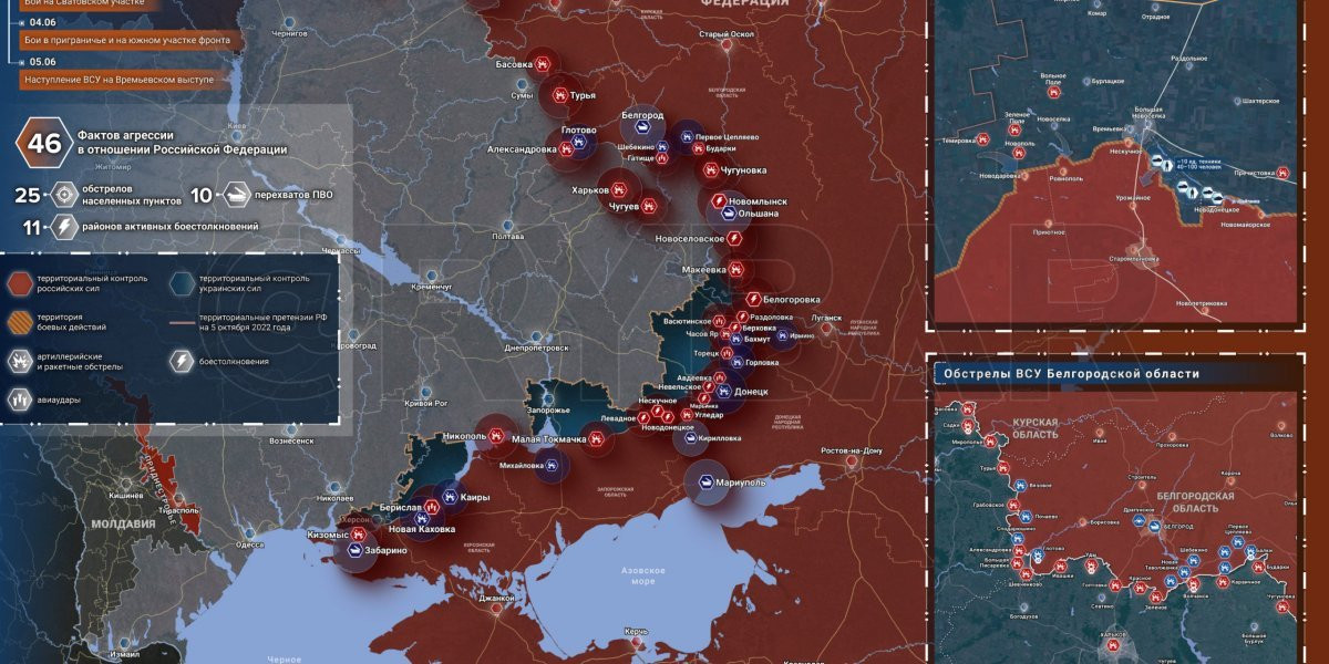 Карта боевых действий на Украине сегодня 07.06.2023 в реальном времени на сейчас