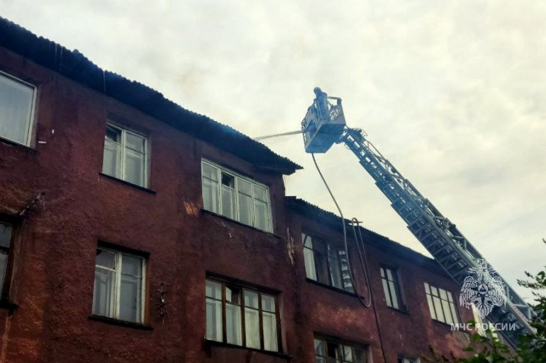 Информация о пожаре в многоквартирном доме по улице Маяковского поступила в оперативные службы днём,11 июня. Там загорелась одна из квартир на третьем этаже и через некоторое время огонь перекинулся на кровлю.