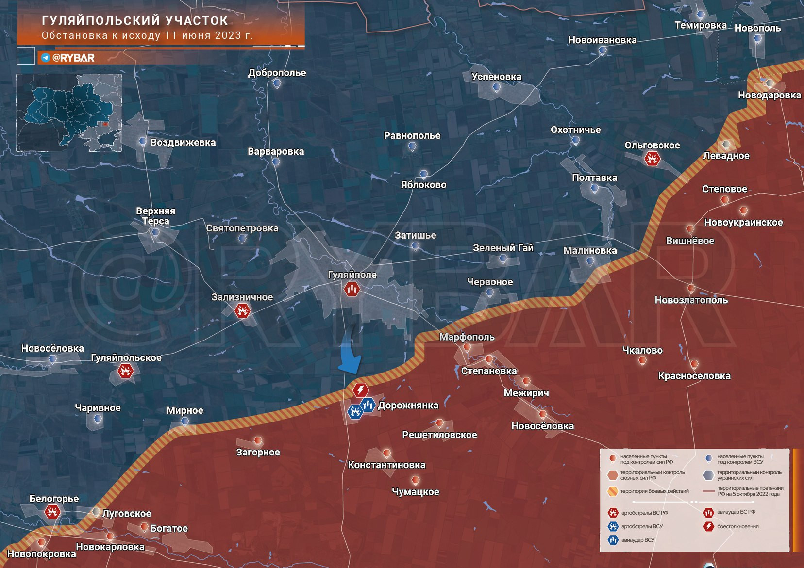 Главные новости » Эксклюзив » Карта боевых действий: Гуляйпольский участок (Запорожское направление) обстановка по состоянию на 09.00 12 июня 2023 года