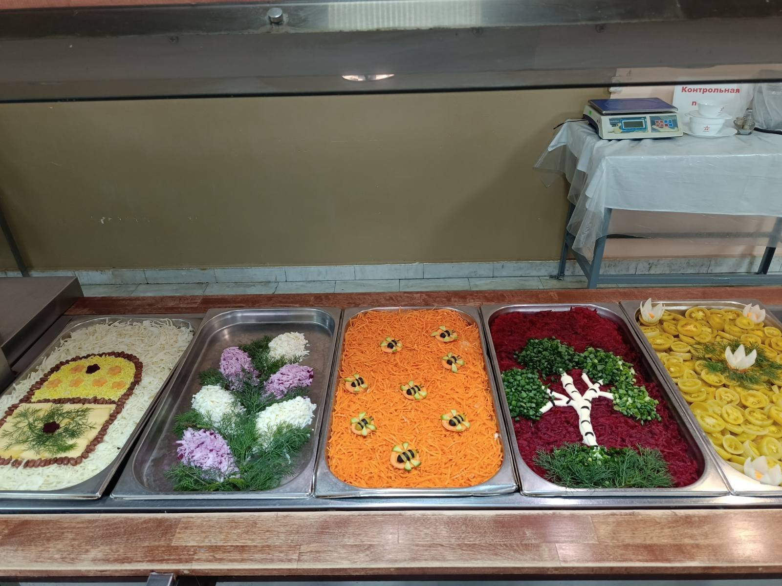 В Самаре из закусок сделали настоящее кулинарное произведение искусства. Блюда были выполнены в виде цветущей сирени, березовых рощ и кружащих над лугами пчел. Такую красоту и есть жалко!