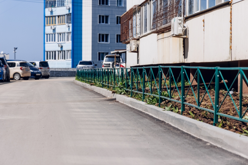 К слову, прошедшая на минувшей неделе стихия испытала новое асфальтовое покрытие. Проверку ливневым дождем новый двор выдержал — здесь предусмотрительно была сделана разуклонка и ливневая канализация. Кроме того для повышения безопасности дорожного движения с помощью асфальта был оформлен лежачий полицейский. В этом дворе обновили бордюры, тротуары, а также поставили ограждающие газоны заборы. Еще одно новшество — современные светильники, установленные на фасаде дома.