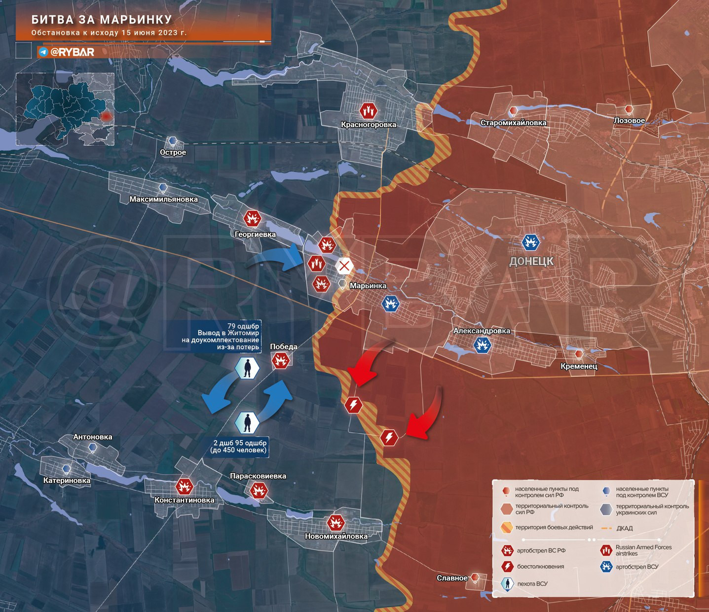Главные новости » Эксклюзив » Карта боевых действий: Битва за Марьинку обстановка к исходу 15 июня 2023 года