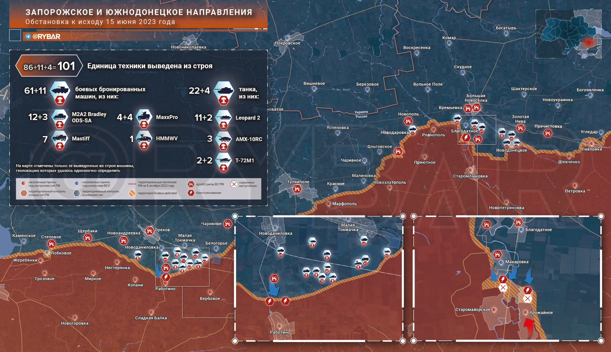 Карта боевых действий: Запорожское и Южнодонецкое направления: сколько техники потеряли ВСУ обстановка по состоянию на 11.00 16 июня 2023 года