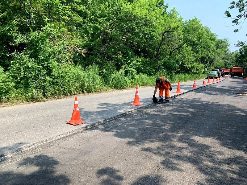 Во Владивостоке на улице Лесной уложили асфальт и укрепили откос