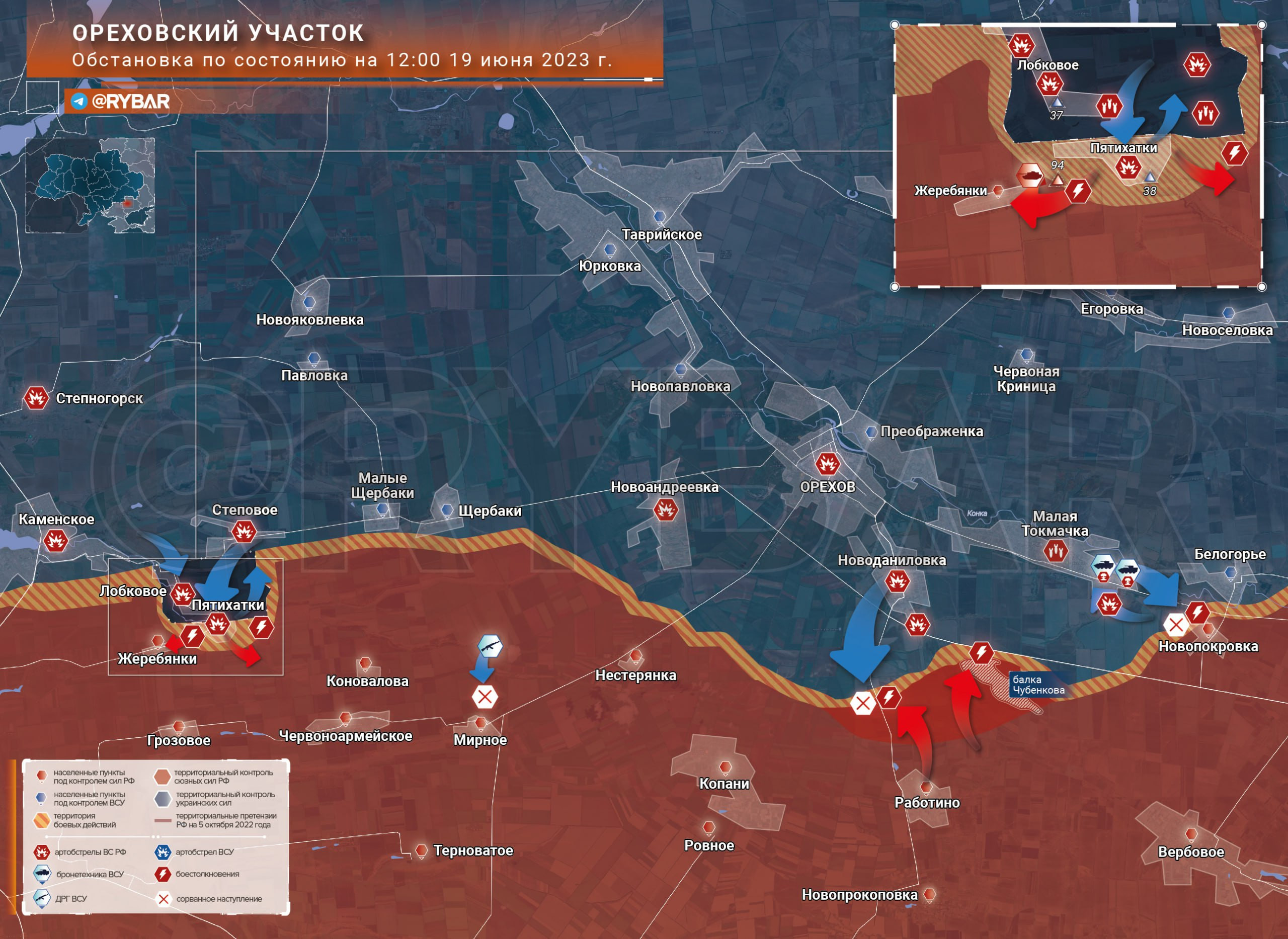 На Запорожском направлении продолжаются бои. Украинские формирования пытаются прорвать российские оборонительные рубежи и расширить «серую зону» возле Пятихаток. На Положском участке всё относительно спокойно: основные боевые действия развернулись под Ореховом.