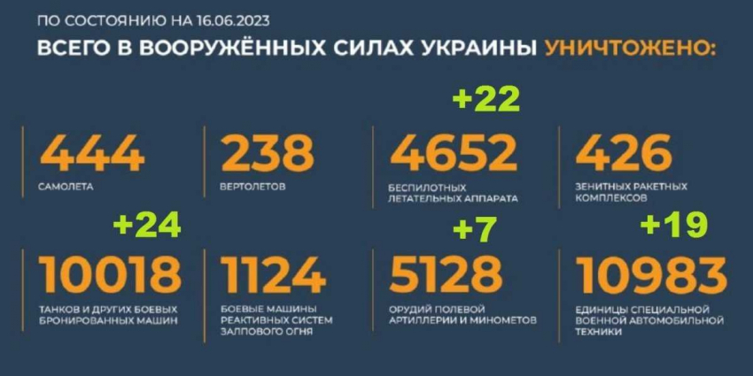 13. Сводка Министерства обороны Российской Федерации 19.06.2023 г.