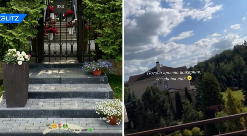 Издание BLITZ+ обратило внимание, что вход обнесен железной черной оградой и украшен цветами. Рядом высажен зеленый коридор туй. С балкона Заворотнюк сняла вид на прилегающую территорию.