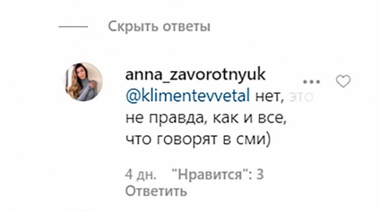 "нет, это не правда, как и все, что говорят в сми)" – категорично ответила дочь Заворотнюк.