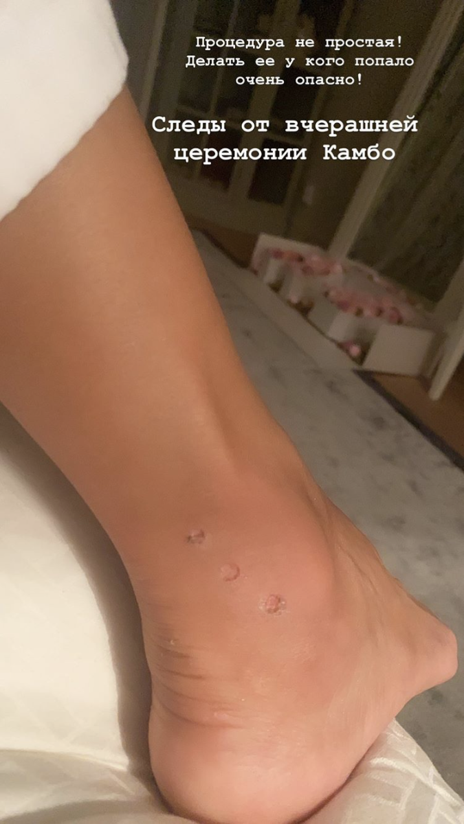 после шаманского обряда "камбо". На лодыжке знаменитости отчетливо видны три следа