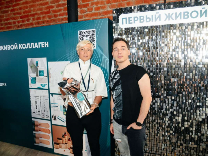 «Наш коллаген называется «первый живой коллаген». Живой, потому что произведен по уникальной технологии низкотемпературного гидролиза, мы используем самое качественное сырье и получается универсальный коллаген для всего организма. Ещё в советском союзе была предшественница нашей компании. Мы начинали производство с простого базового продукта альфа-коллаген, но позже рынок, спрос, нас, так скажем, вынудил пойти и в косметологию. Сейчас у нас порядка пятидесяти продуктов. Они разделены на категории: пищевой коллаген, функциональные напитки, лицо, тело, волосы, профессиональная косметика и безопасный макияж».