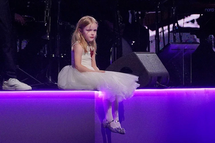 Младшая дочь Анастасии Заворотнюк дебютировала в номере папы Петра Чернышева с его бессменной партнершей Наоми Ланг. В начале своего выступления фигурист нежно пронес ребенка на руках и посадил рядом с оркестром. А в конце номера вернулся к дочери, взял Милу на руки, обнимая и целуя ее.