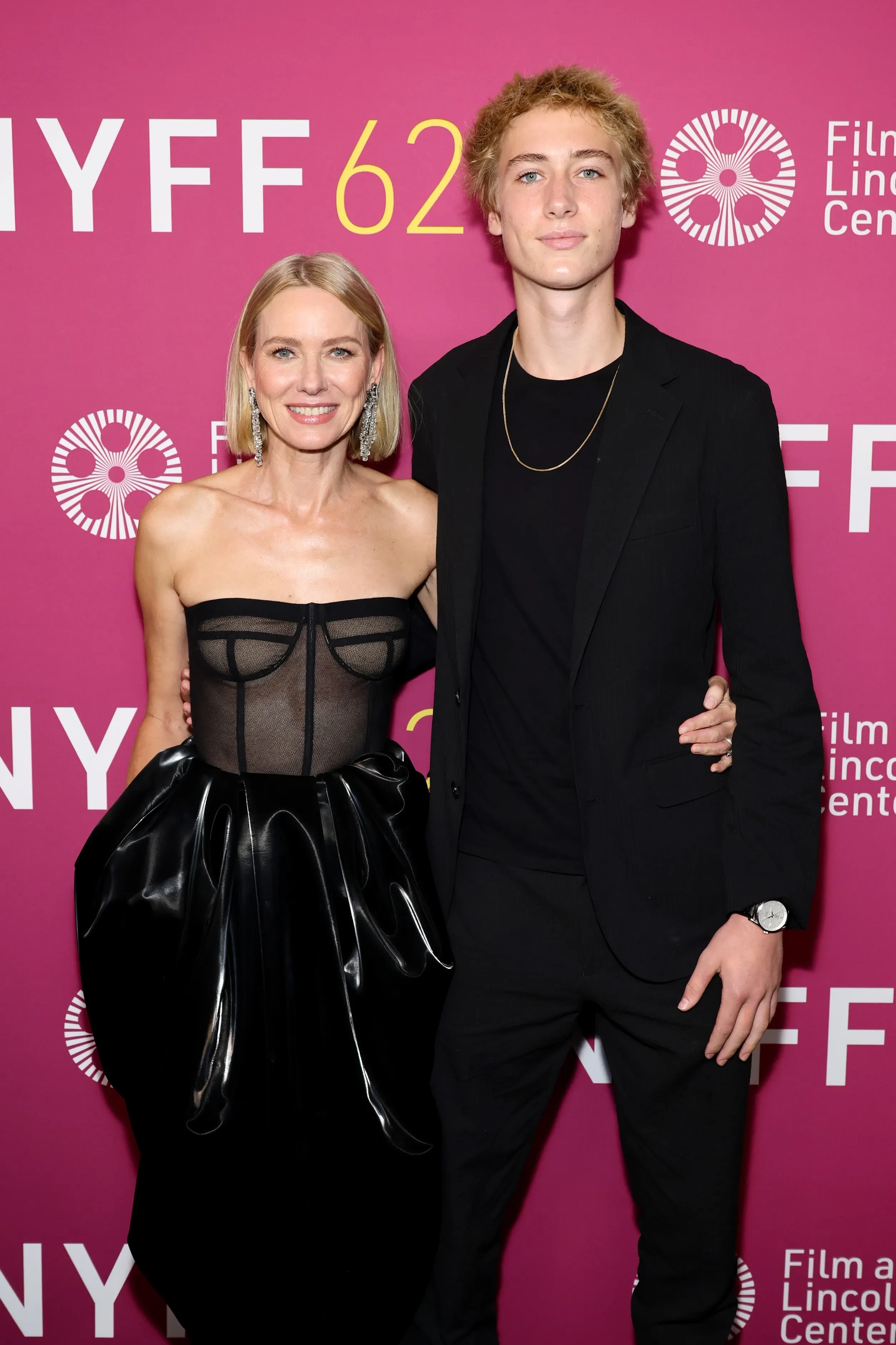 Наоми Уоттс вместе с 16-летним сыном Каем появилась на премьере фильма "Друг". 56-летняя актриса для выхода в свет выбрала длинное драпированное платье бренда Jacquemus с чёрными перьями на юбке. Образ она дополнила классическими белыми туфлями. Кай, который давно предпочитает женскую одежду мужской*, надел чёрно-розовый жакет в горошек с рюшами и розовый топ с юбкой. Он также дополнил образ чёрными кожаными ботинками и чёрно-белой сумкой Valentino.