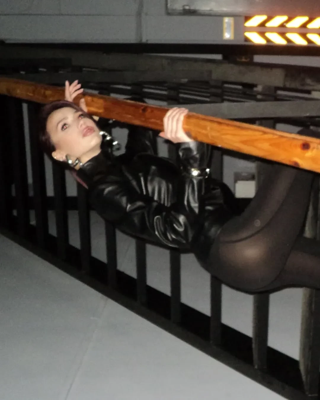 На фото Загитова предстала в кожаной куртке и полупрозрачных леггинсах с убранными в длинный хвост волосами. Она также выложила кадр с бэкстейджа, на котором сидит вместе с сумкой Hermes.
