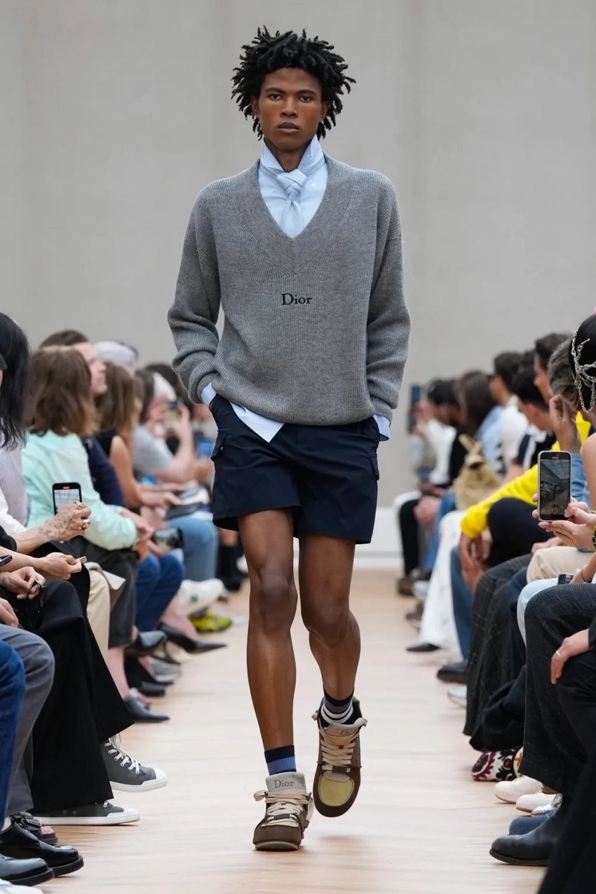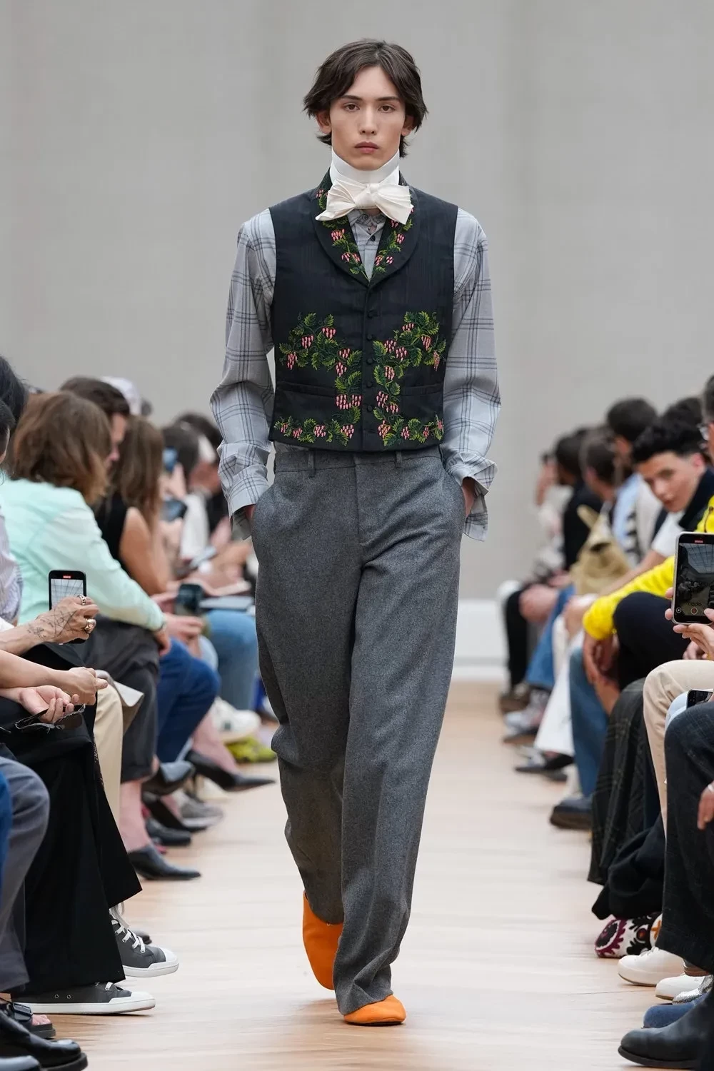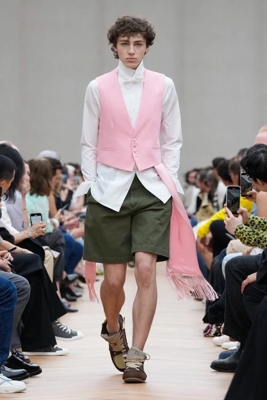 Фаррелл Уильямс и Хелен Ласичан с сыномВ дебютном шоу Джонатана Андерсона в качестве нового креативного директора французского модного дома модели выходили на подиум в рубашках с высокими воротниками и фраках, что стало отсылкой к одной из любимых книг дизайнера — "Дракуле" Брэма Стокера. В коллекции также представлены объёмные шорты карго, которые явно завирусятся среди инфлюенсеров, широкие костюмные брюки и приталенные жилеты, потёртые джинсы, "дедовские" сандалии, лоферы и высокие кроссовки. Зрители и критики высоко оценили дебют Андерсона и встретили его на поклоне овациями.