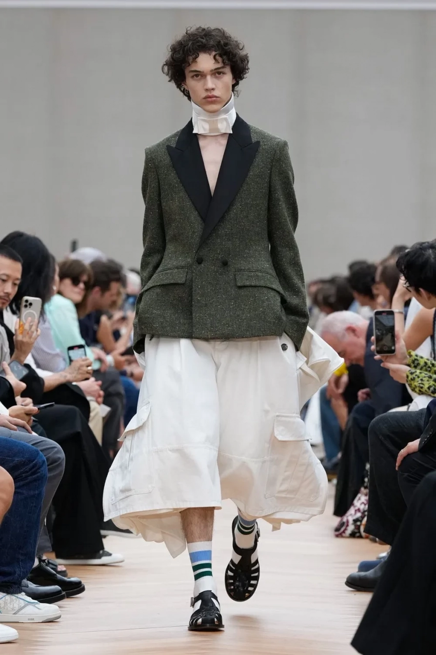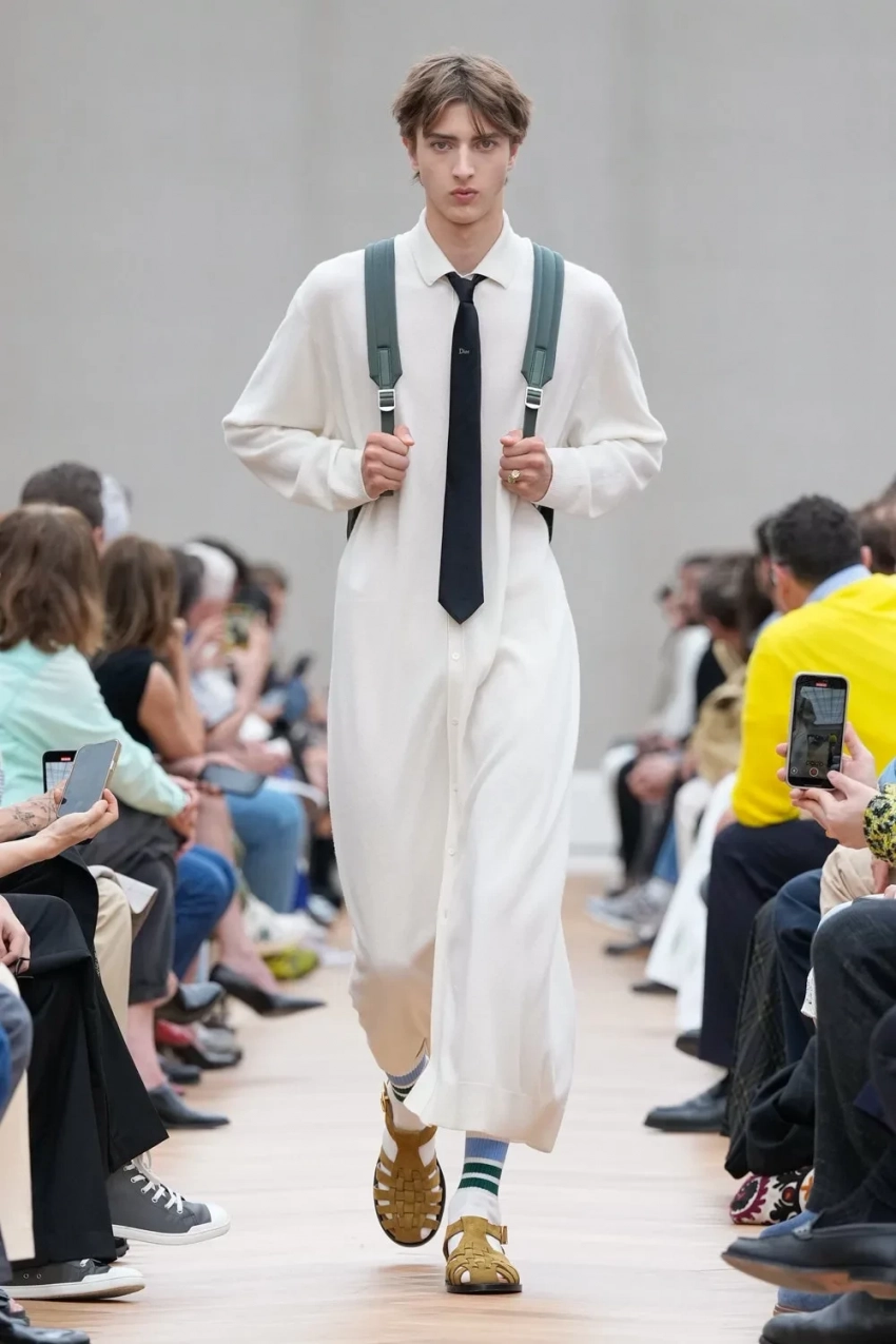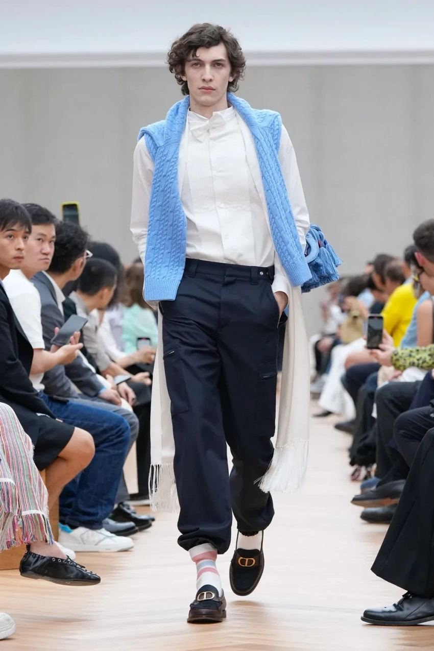 Фаррелл Уильямс и Хелен Ласичан с сыномВ дебютном шоу Джонатана Андерсона в качестве нового креативного директора французского модного дома модели выходили на подиум в рубашках с высокими воротниками и фраках, что стало отсылкой к одной из любимых книг дизайнера — "Дракуле" Брэма Стокера. В коллекции также представлены объёмные шорты карго, которые явно завирусятся среди инфлюенсеров, широкие костюмные брюки и приталенные жилеты, потёртые джинсы, "дедовские" сандалии, лоферы и высокие кроссовки. Зрители и критики высоко оценили дебют Андерсона и встретили его на поклоне овациями.
