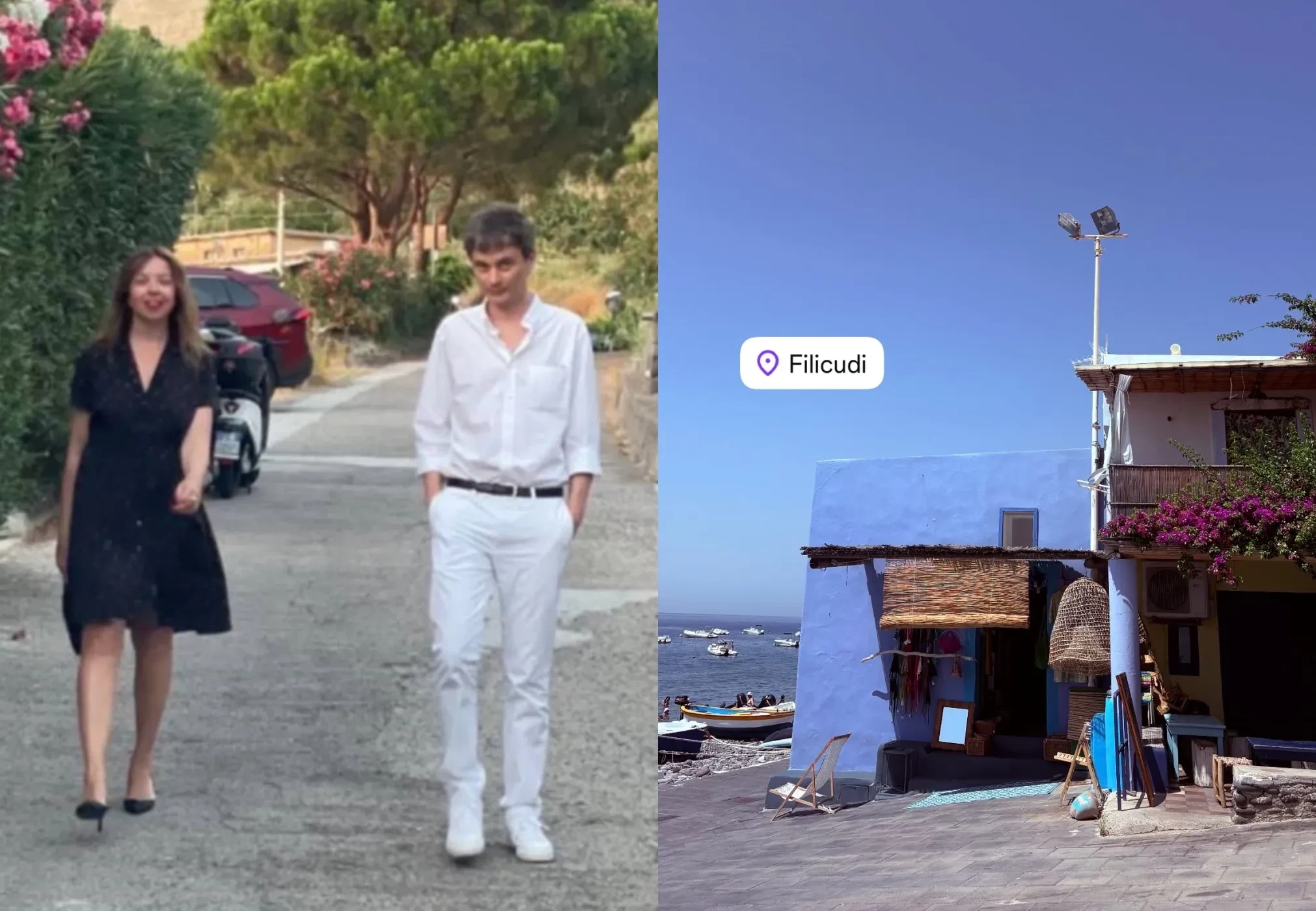 Как рассказала Пронченко в своём телеграм-канале, она отдыхает не только с Тереховым, а в компании, однако состав спутников раскрывать не стала. Путешественники не задерживаются на одном месте и уже успели посетить несколько островов архипелага — Филикуди и Салина. На последнем они остановились в небольшом отеле La Locanda del Postino, расположенном внутри кратера. Особое же внимание Зинаида и Александр уделяют морю — ему посвящена большая часть их публикаций.