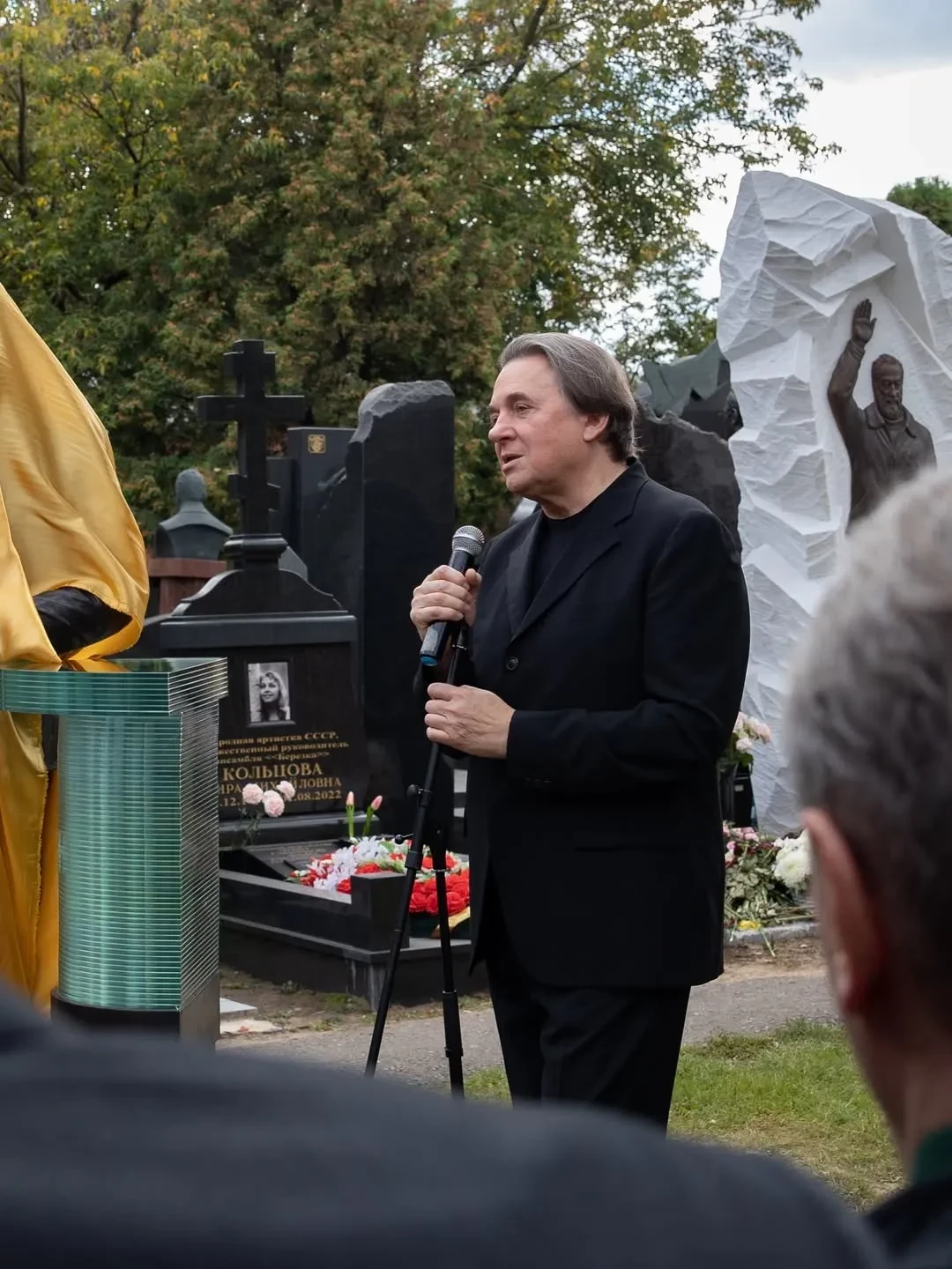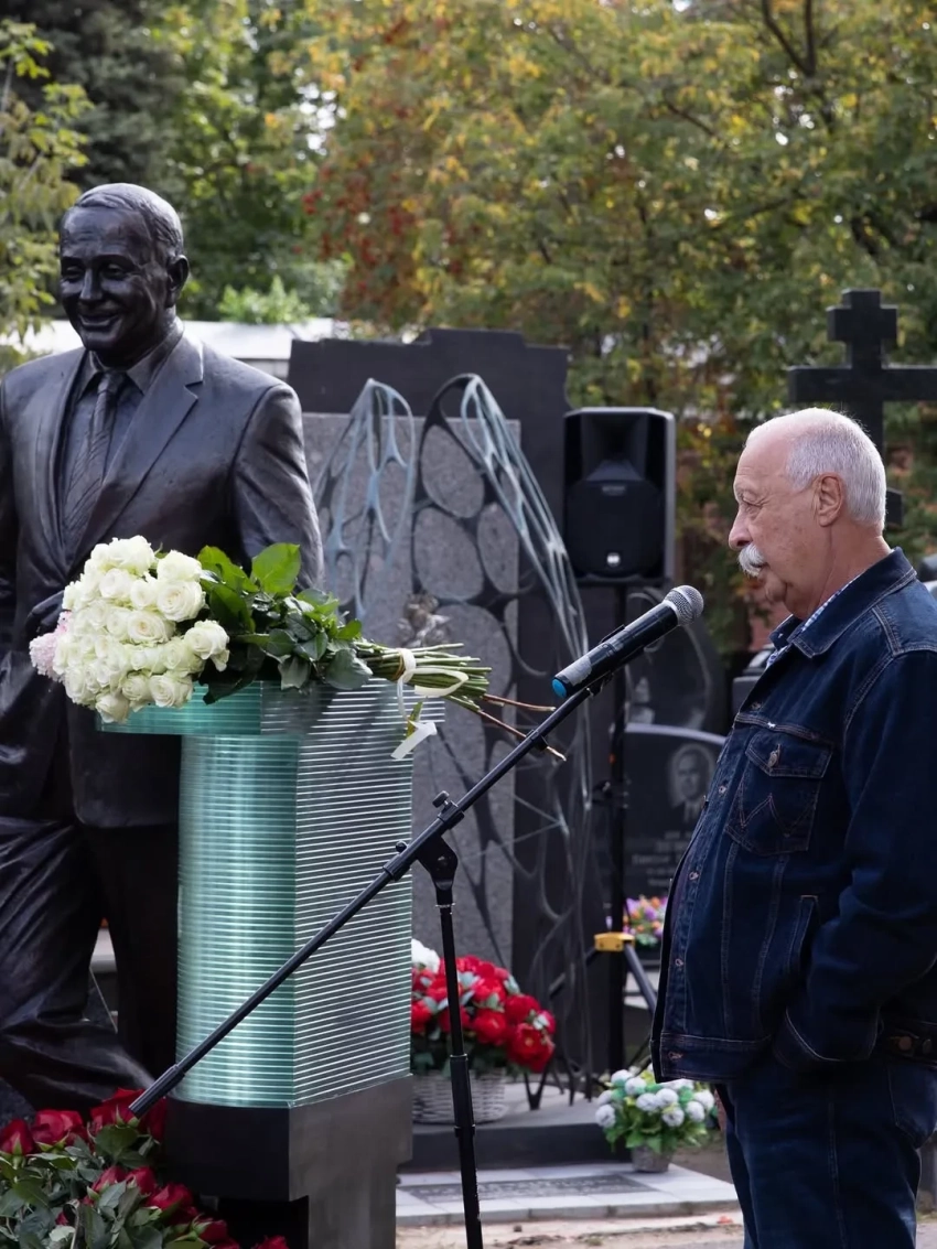 Памятник Александру МасляковуАлександр Масляков умер год назад в возрасте 82 лет. В 2022 году ведущий программы "КВН" перенёс коронавирус, и после этого у него обнаружили опухоль в лёгких.