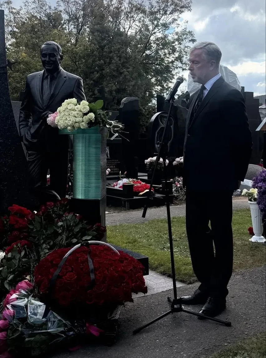 Екатерина и Александра Стриженовы, Эдгард ЗапашныйЗнаменитости принесли цветы к могиле Маслякова и выступили с речами. "Александр Васильевич стоит, облокотившись на телевизионную стойку, где у него всегда лежал сценарий игры КВН, и улыбается своей фирменной неповторимой улыбкой! Кажется, что вот-вот мы услышим команду "Мотор!" и Масляков скажет: "Мы начинаем КВН!". Мы аплодируем президенту планеты КВН — человеку, чьё имя навсегда вписано в историю российского телевидения", — написала Екатерина Стриженова в соцсетях.