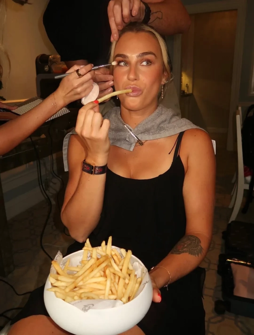 38-летняя теннисистка Мария Шарапова пришла на вечеринку в синем шёлковом платье, а 50-летний футболист Дэвид Бекхэм выбрал костюм такого же цвета. 27-летняя победительница четырёх турниров Большого шлема Арина Соболенко позировала фотографам в маленьком чёрном платье.