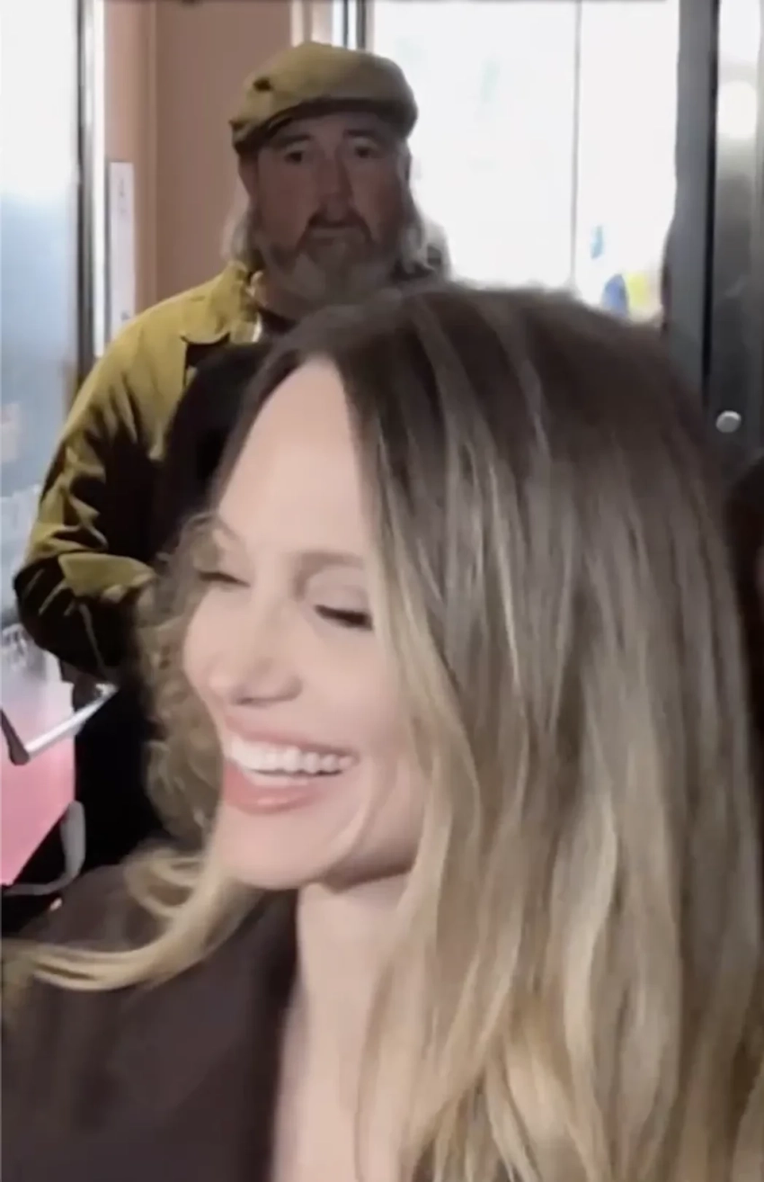 В ролике мужчина с бородой, усами и в кепке заходит в здание, где Джоли общается с прессой и поклонниками, и, заметив её, останавливается. Он практически не отводит глаз от актрисы. По мнению некоторых пользователей, Брэд Питт вполне мог изменить внешность с помощью накладной бороды, живота и грима, чтобы быть ближе к Анджелине. В сети даже сравнили то, как незнакомец и голливудский актёр пьют напиток из пакета.