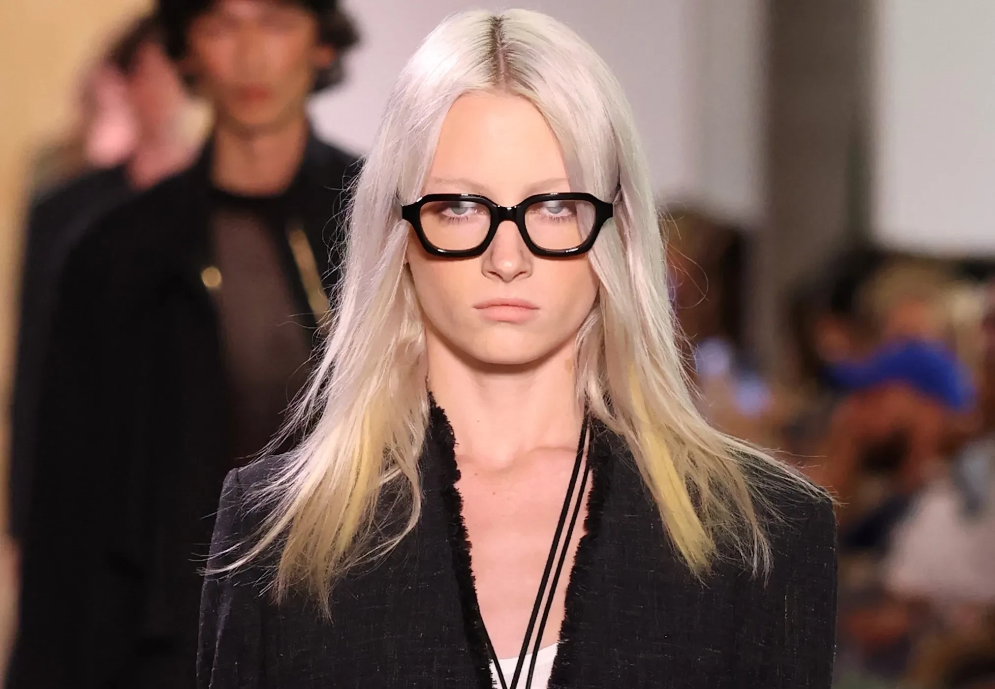 16-летний Кай Шрайбер, который в прошлом сезоне дебютировал как модель на шоу Valentino, вышел на подиум в брюках в полоску свободного кроя, тёмно-сером пиджаке и с осветлёнными волосами.