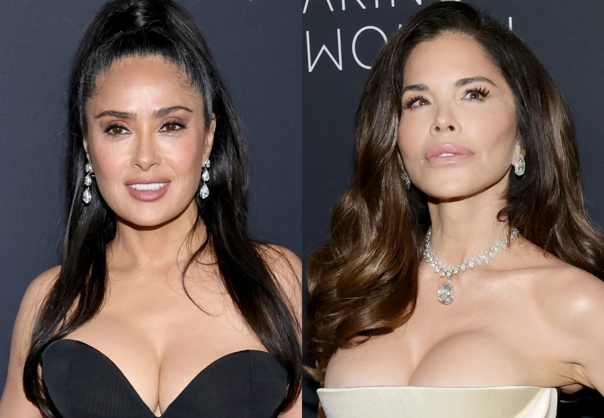 Жёны миллиардеров Сальма Хайек и Лорен Санчес выгуляли платья с глубоким декольте