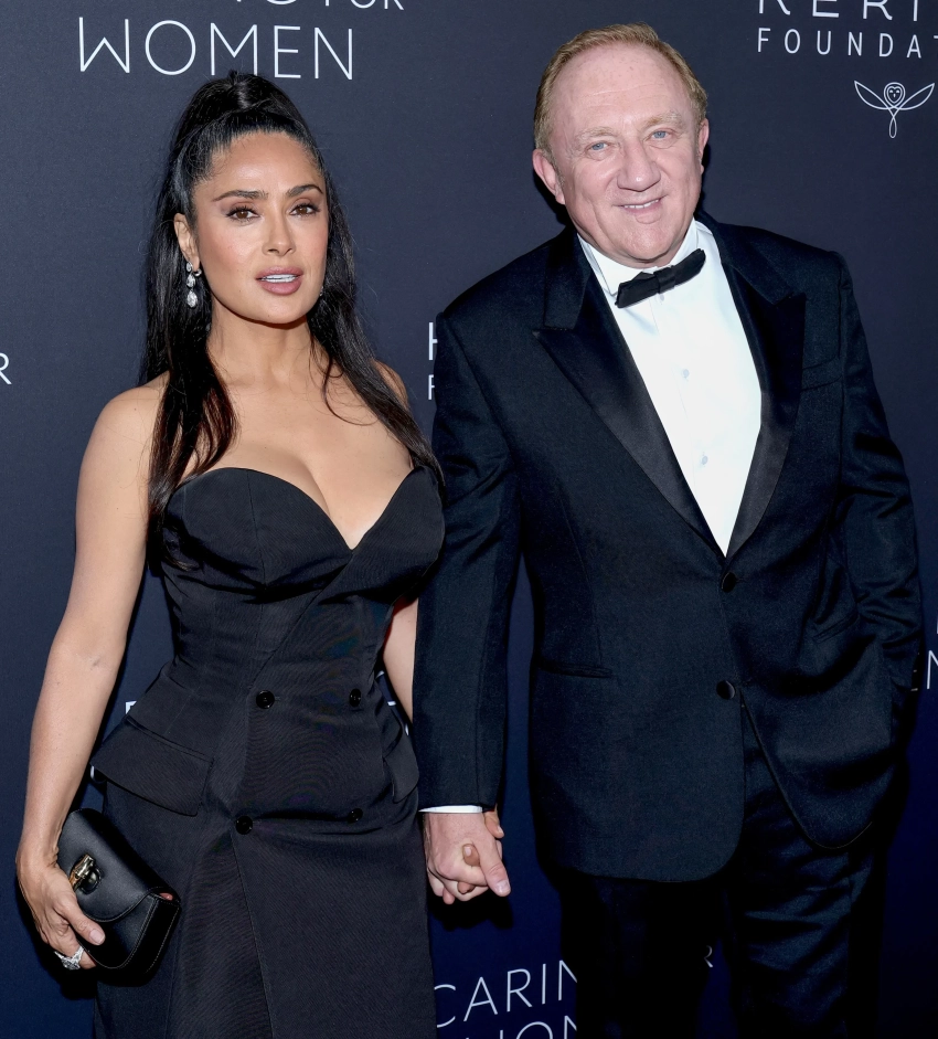 59-летняя актриса и супруга генерального директора Kering Франсуа-Анри Пино Сальма Хайек пришла на мероприятие в чёрном платье Balenciaga из костюмной ткани. Она дополнила образ серьгами с бриллиантами, клатчем Gucci и причёской с высоким хвостом.