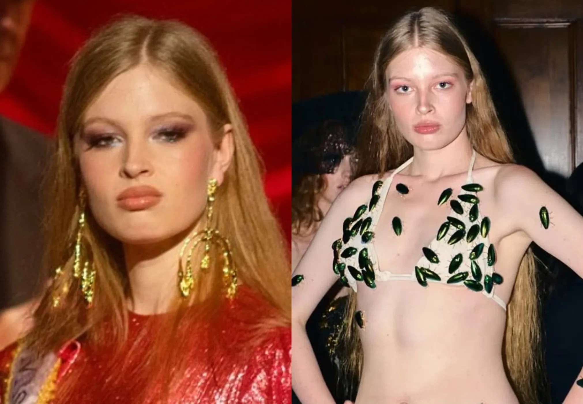Вивьен Уилсон на показе Alexis Bittar весна-лето — 2026Вивьен Уилсон на показе Alexis Bittar весна-лето — 2026На показе Prabal Gurung модель вышла на подиум в белом платье, а на шоу Dauphinette Уилсон — в юбке и бра с "жуками".