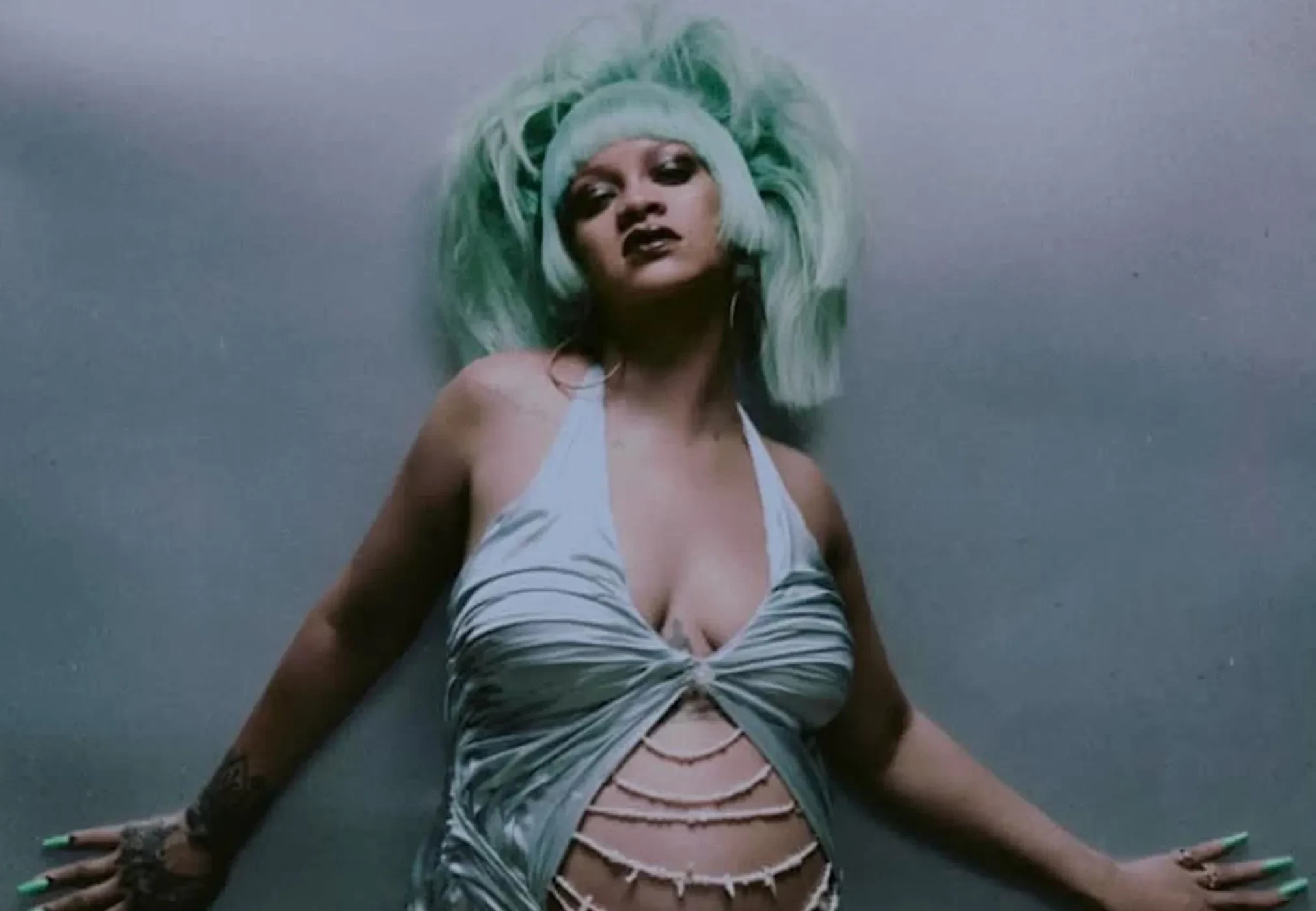 Беременная Рианна с зелёными волосами и декольте снялась для глянца