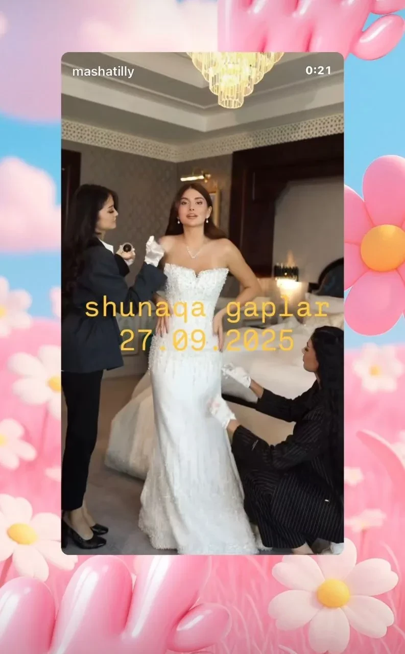 Внучка экс-президента Узбекистана Марьям Тилляева, которая готовится выйти замуж за своего бойфренда Арно, раскрыла дату свадьбы и показала свадебное платье. В инстаграме* она опубликовала видео, в котором танцует под собственный трек в белом подвенечном наряде с фатой. При этом в кадре видна дата "27.09.2025".