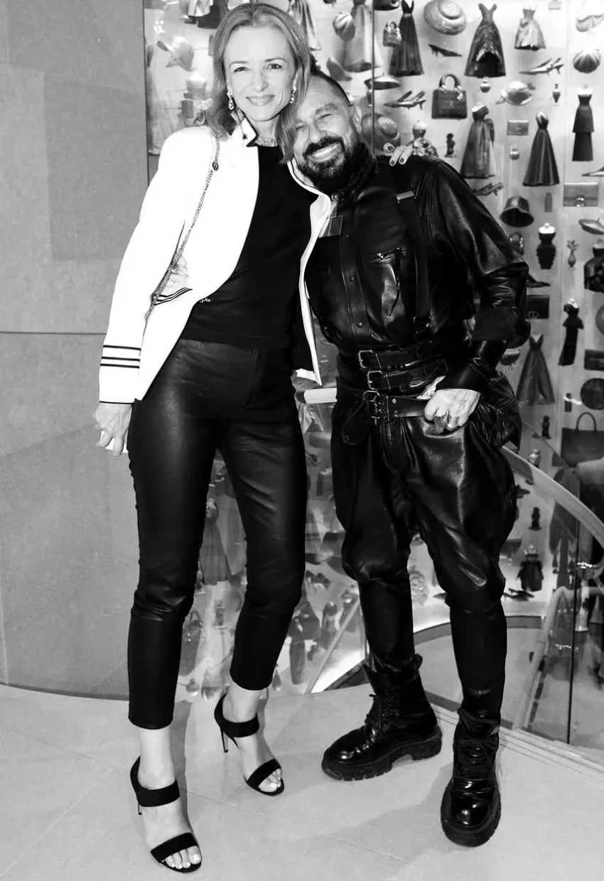 44-летняя Даша Жукова пришла на ужин в чёрном платье с пуговицами и туфлях в тон, а 50-летняя Дельфина Арно позировала в укороченных кожаных брюках и белом жакете.