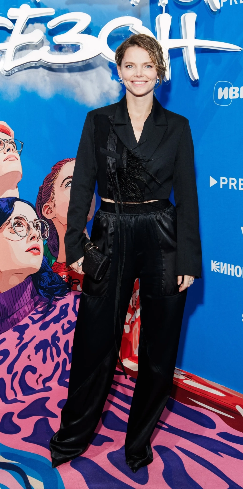 На красной дорожке Боярская появилась в свободных брюках на резинке и укороченном пиджаке с декором. Она с удовольствием позировала перед камерами — улыбалась и принимала разные позы, поворачиваясь в профиль.
