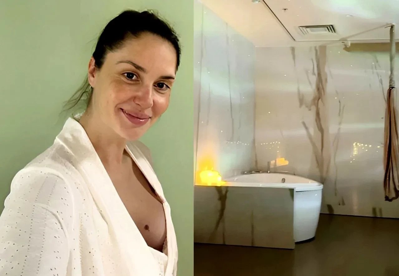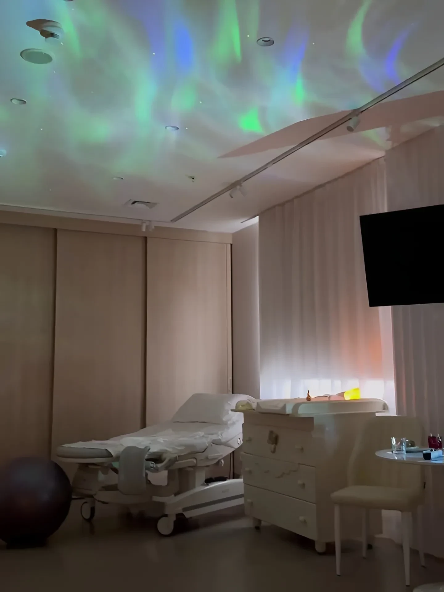"Уютнейшая родовая палата, врачи лучшие, оборудование самое современное, и сразу кажется, что всё точно будет хорошо, и ты расслабляешься!" — написала Муцениеце, опубликовав видео из персональной палаты, оборудованной ванной, гамаком, личной кухней и проектором звёздного неба.