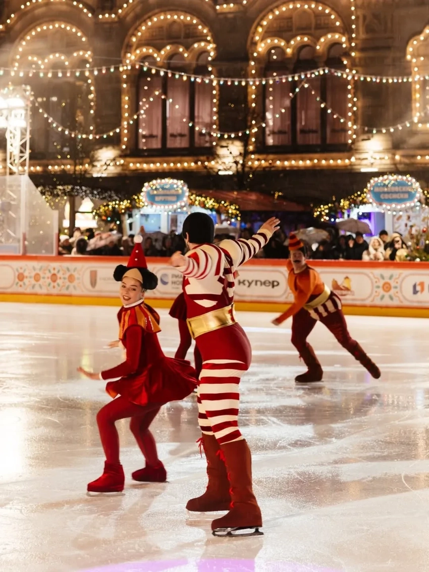 Ксения Шипилова, Илья Авербух, Евгения Медведева, Стеша Маликова и Ксения Соловьёва собрались на ГУМ-катке