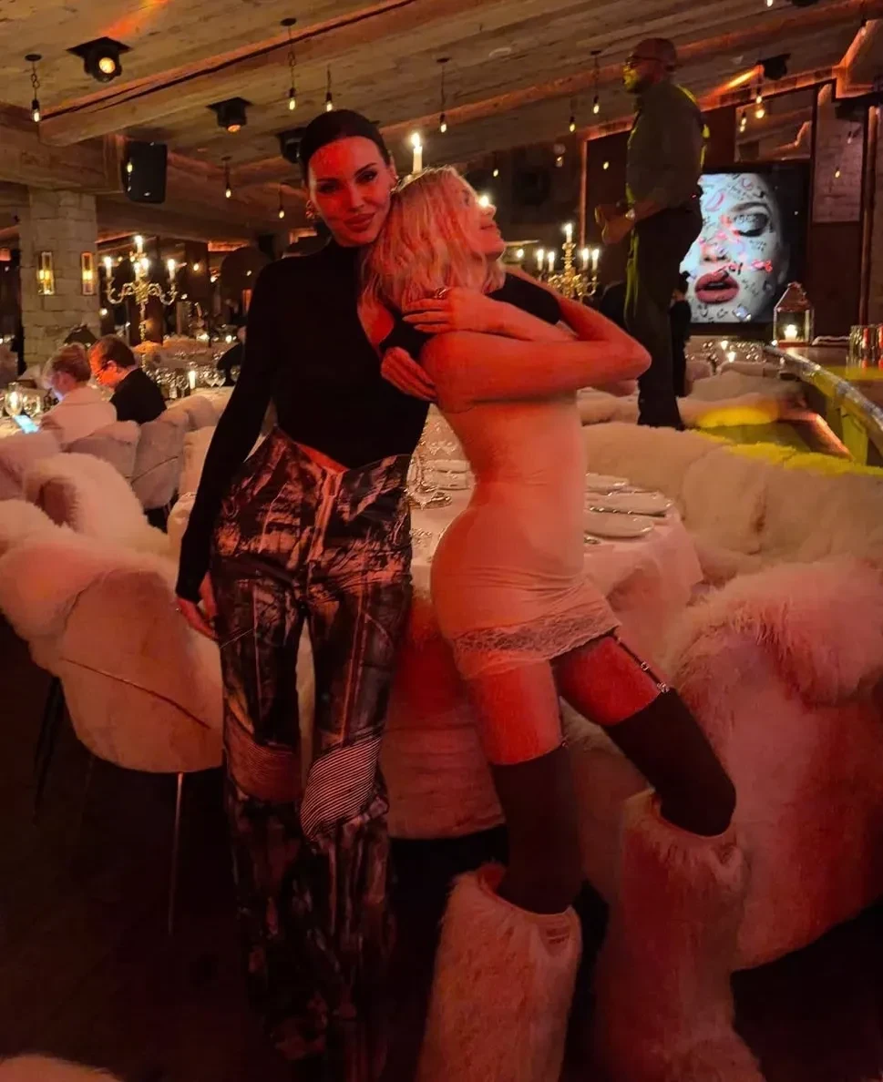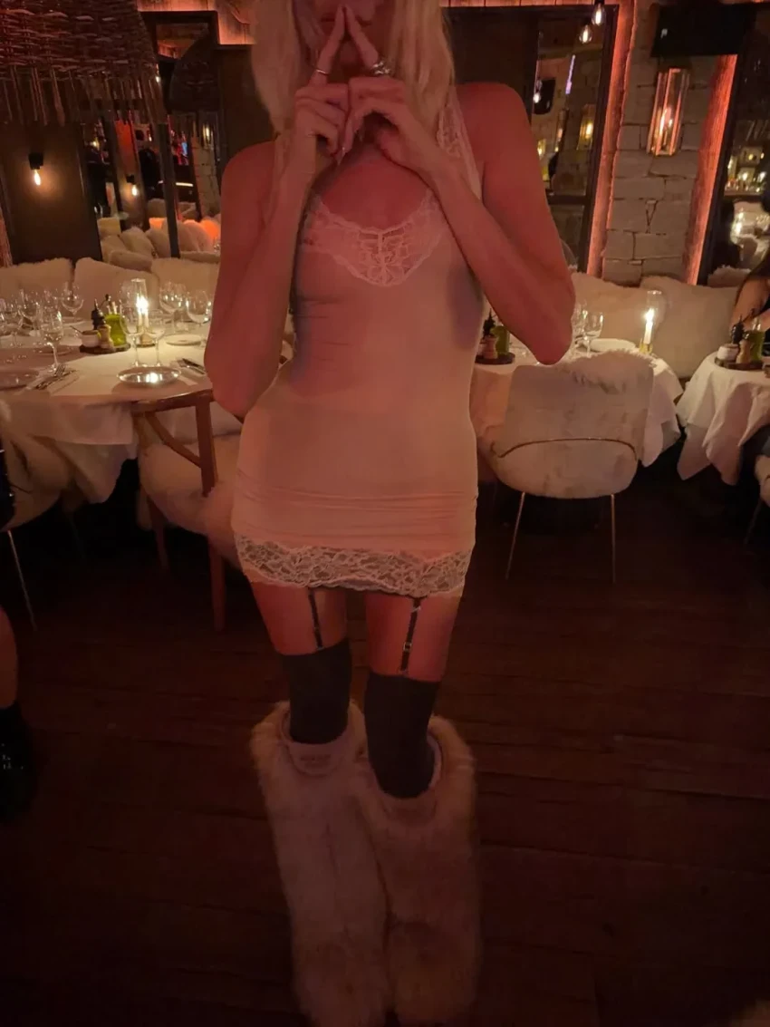В Куршевеле 39-летняя Перминова снялась на улице в полностью прозрачном платье, унтах и меховых наушниках, а в ресторан пришла в облегающем платье-комбинации и чулках. За ужином с Еленой позировала 44-летняя Ксения Собчак, которая тоже предпочла надеть платье в "голом" стиле.