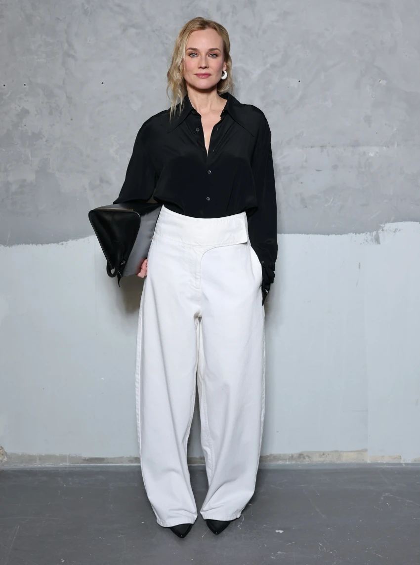 Показ Dior Menswear осень — 2026Вчера в Париже также состоялось шоу бренда Ami, которое посетили: Диана Крюгер, Катрин Денёв и сестра Венсана Касселя Сесиль. 49-летняя актриса Диана Крюгер пришла в чёрной блузе и широких белых брюках, а 82-летняя Катрин Денёв позировала в серой шубе.
