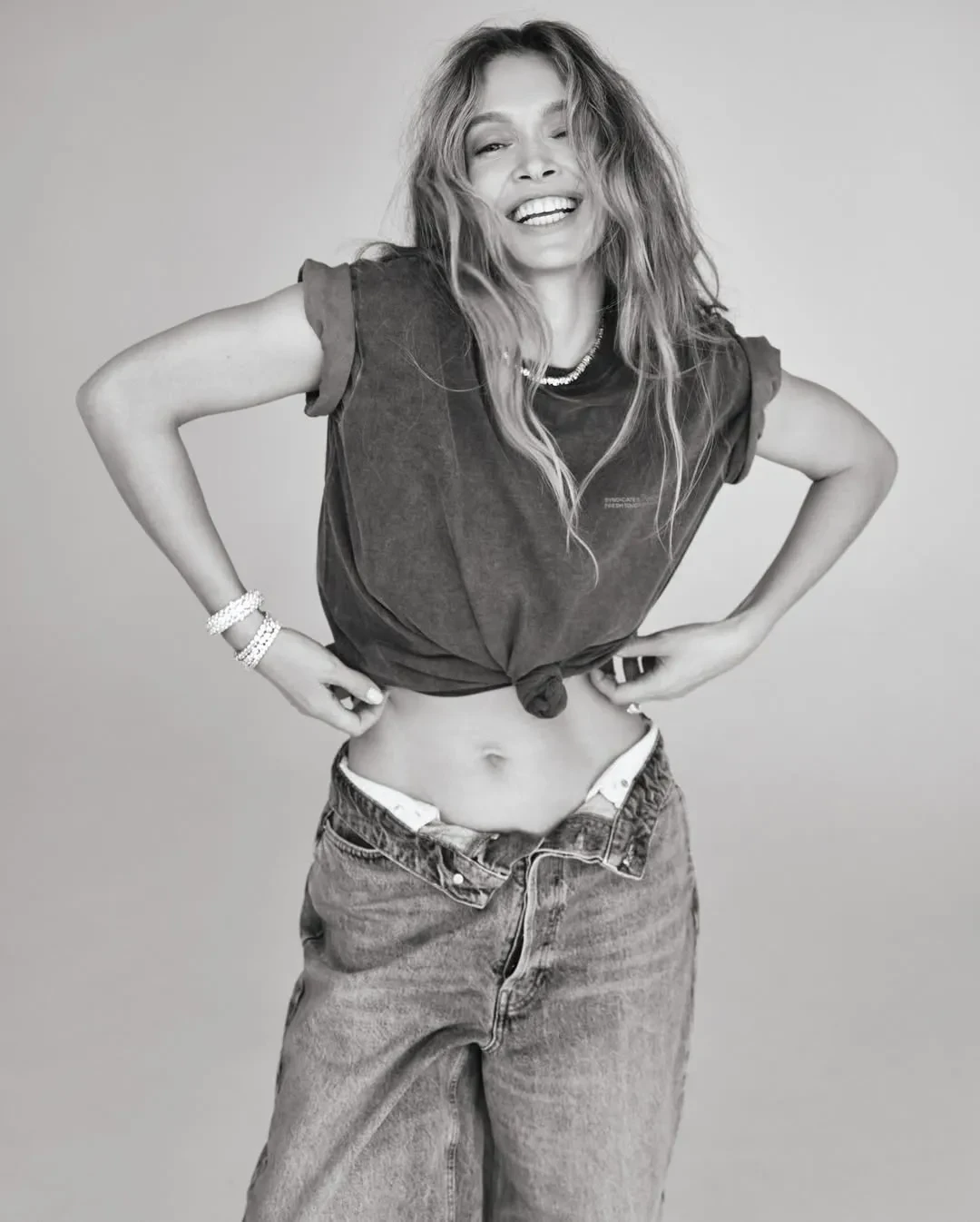 На нескольких фото Брежнева предстала в наряде оверсайз с джемпером и джинсами, которые она расстегнула в области талии. Ещё на двух снимках она позирует в длинной белоснежной шубе поверх бюстгальтера и в меховых микрошортах украинского бренда. Любопытно, что недавно в похожем комплекте снялась жена российского миллиардера Наталья Давыдова (чем вызвала критику в сети).