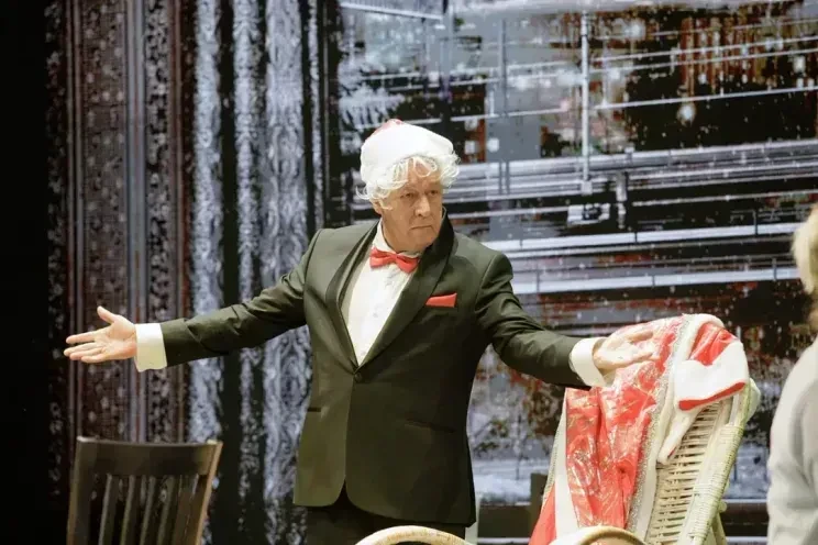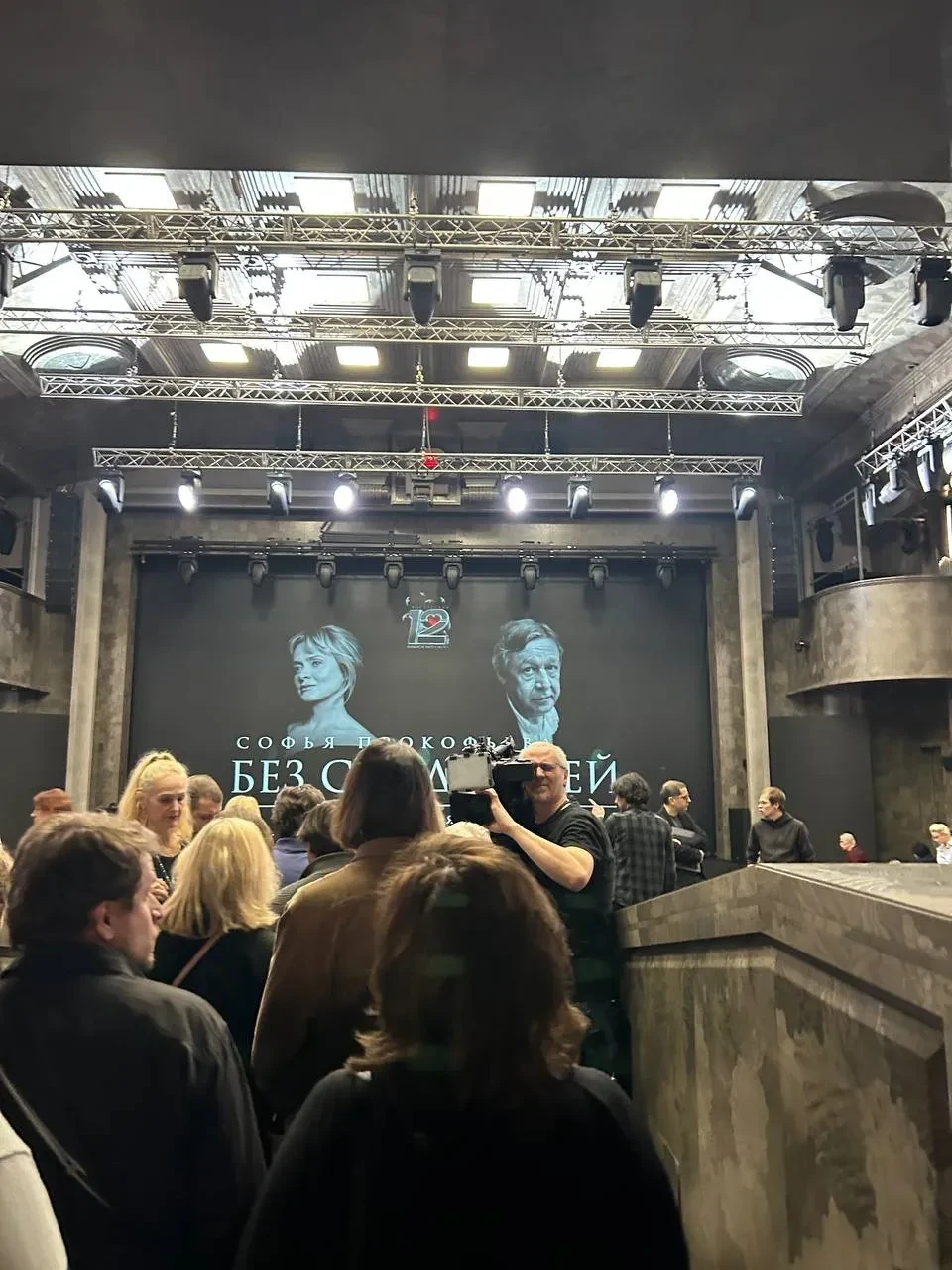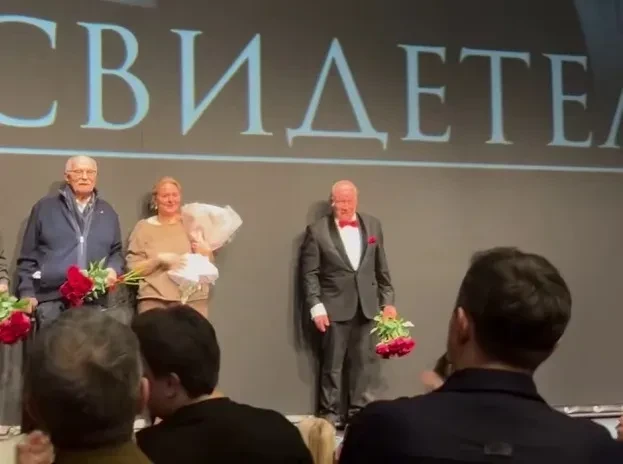 Фото Арины БородинойМихалкову и Ефремова приняли "невероятно тепло", рассказала в своём телеграм-канале журналистка Арина Бородина, которая также присутствовала на показе. После спектакля зрители аплодировали стоя почти 10 минут, актёров засыпали цветами.