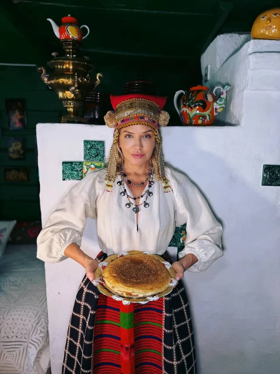 Блины с красной икрой и народные костюмы: как Яна Рудковская, Виктория Шелягова, Оксана Самойлова и Наталья Давыдова отмечают Масленицу