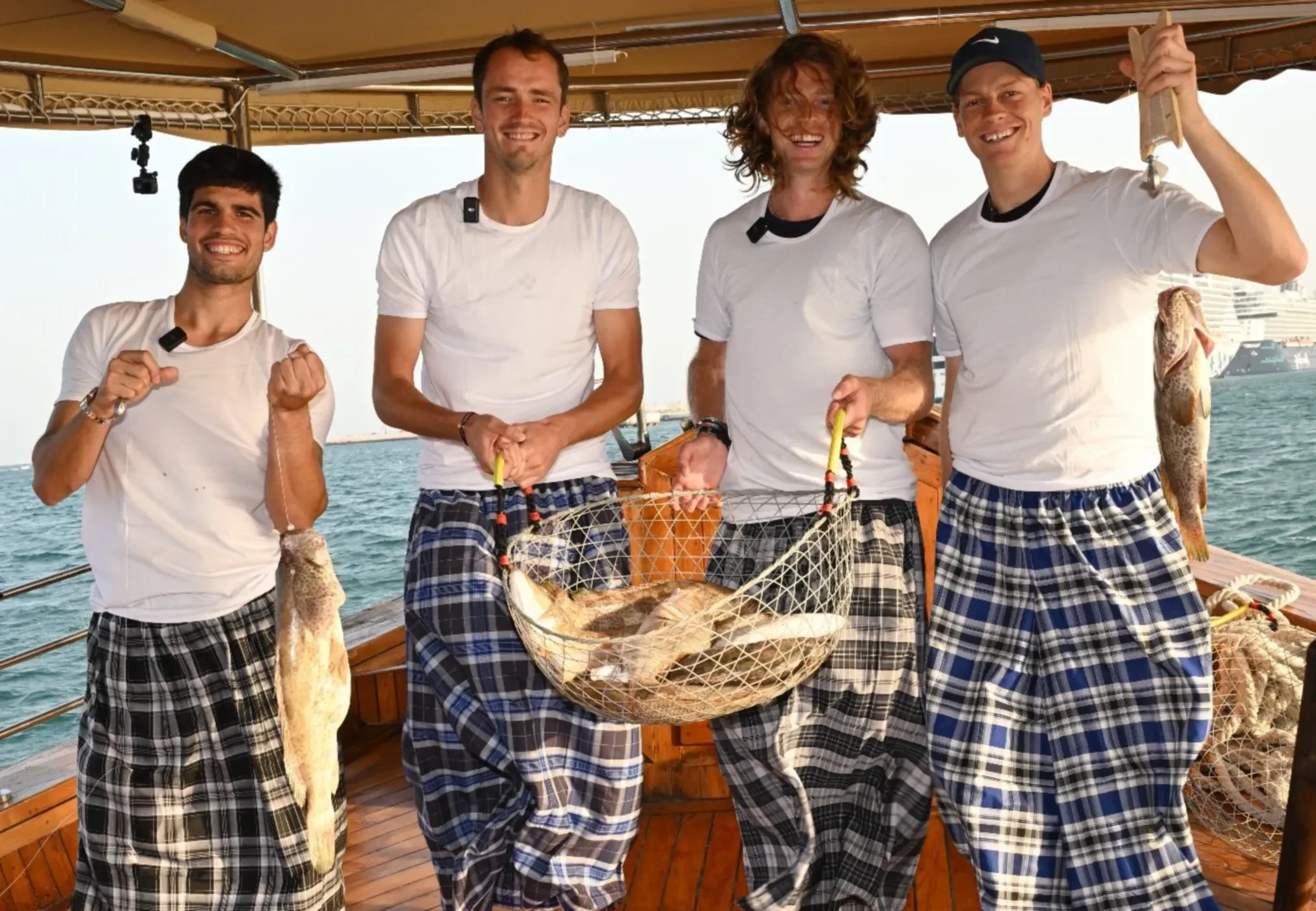 Андрей Рублёв, Даниил Медведев, Янник Синнер и Карлос Алькарас порыбачили вместе перед турниром в Дохе