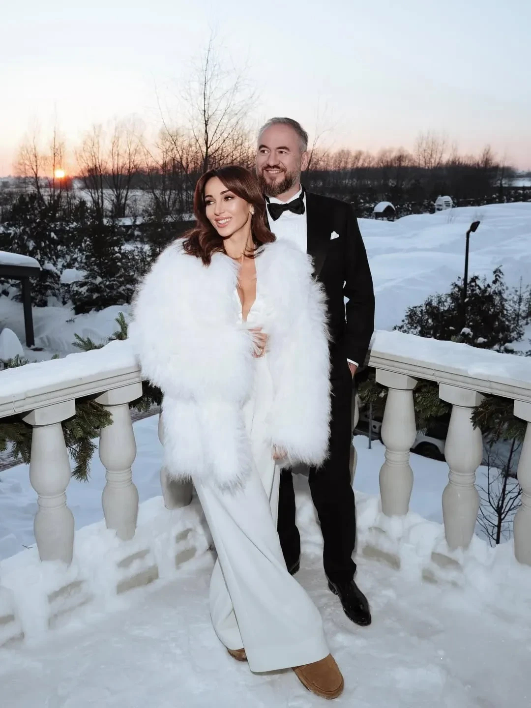Анфиса Чехова и Александр Златопольский"Я всегда мечтала о свадьбе в Европе, потому что безумно люблю европейские пейзажи и их невероятную архитектуру. При этом я никогда не хотела зимнюю свадьбу, поэтому нужно было найти место с таким колоритом, чтобы оно напоминало Европу, а зимний пейзаж выглядел не уныло, а вдохновляюще", — рассказала Анфиса Чехова.