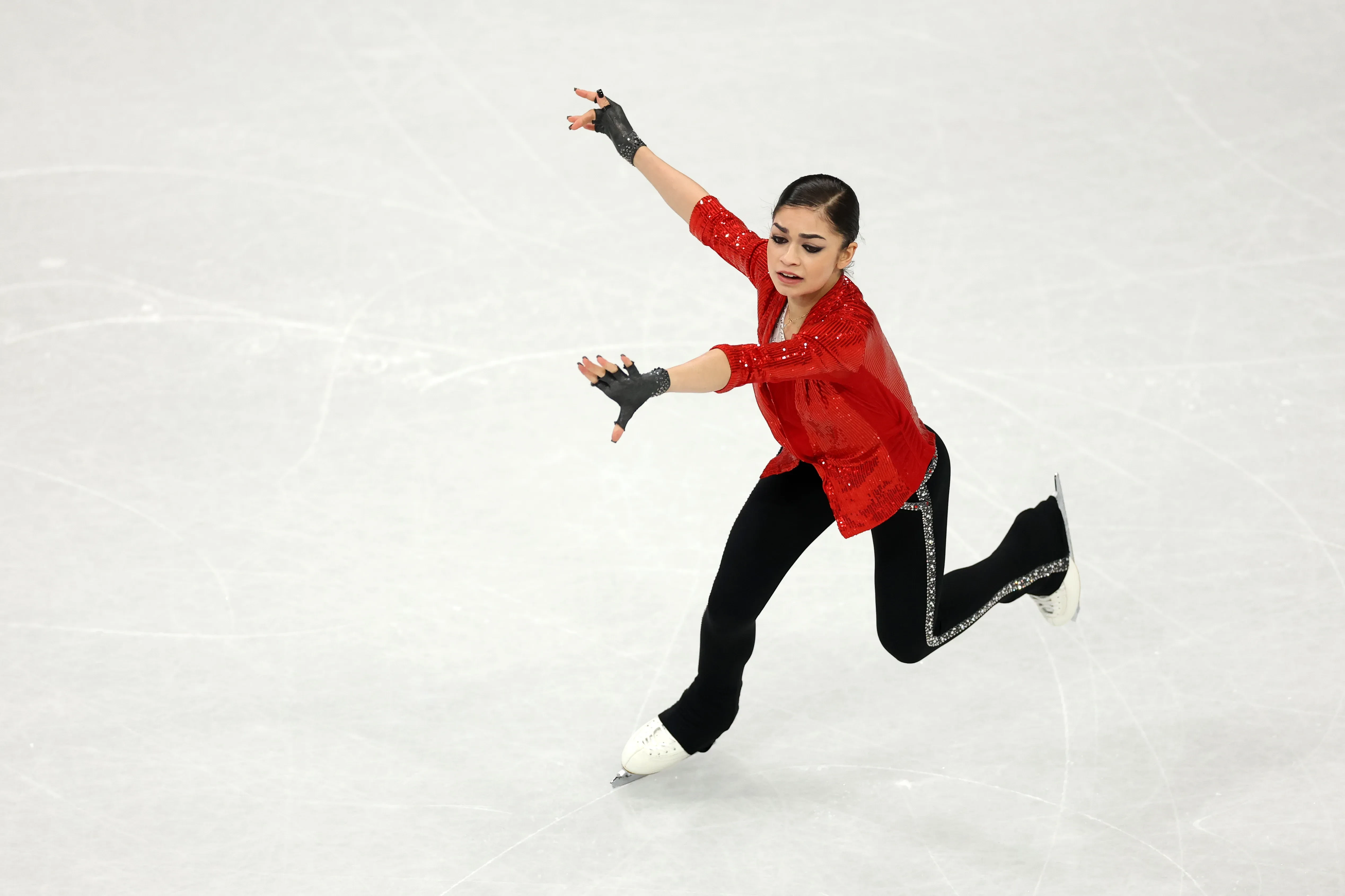 Аделия Петросян с тренеромЧемпионкой среди девушек-одиночниц в фигурном катании на нынешней Олимпиаде стала американка Алиса Лью, второе место заняла японка Каори Сакамото. На третьей строчке расположилась ещё одна японская спортсменка Ами Накаи.
