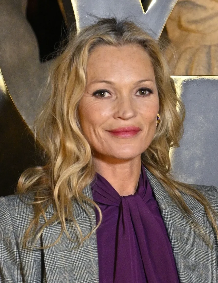 38-летняя Рози Хантингтон-Уайтли, внешность которой недавно раскритиковали в сети, пришла на показ в кожаном костюме, а 52-летняя Кейт Мосс с улыбкой позировала фотографам в сером костюме с контрастной фиолетовой блузой.