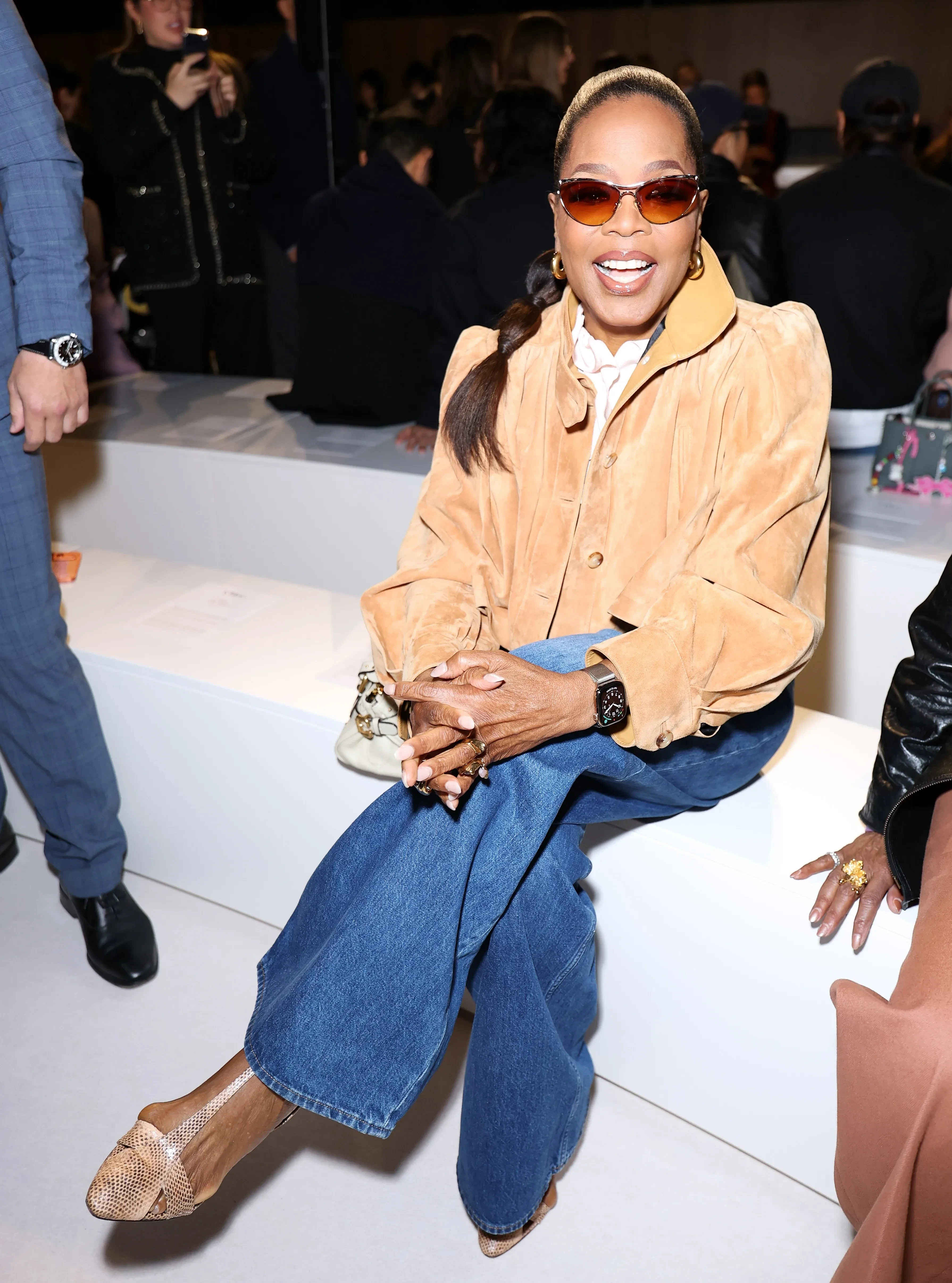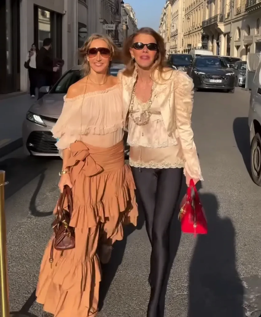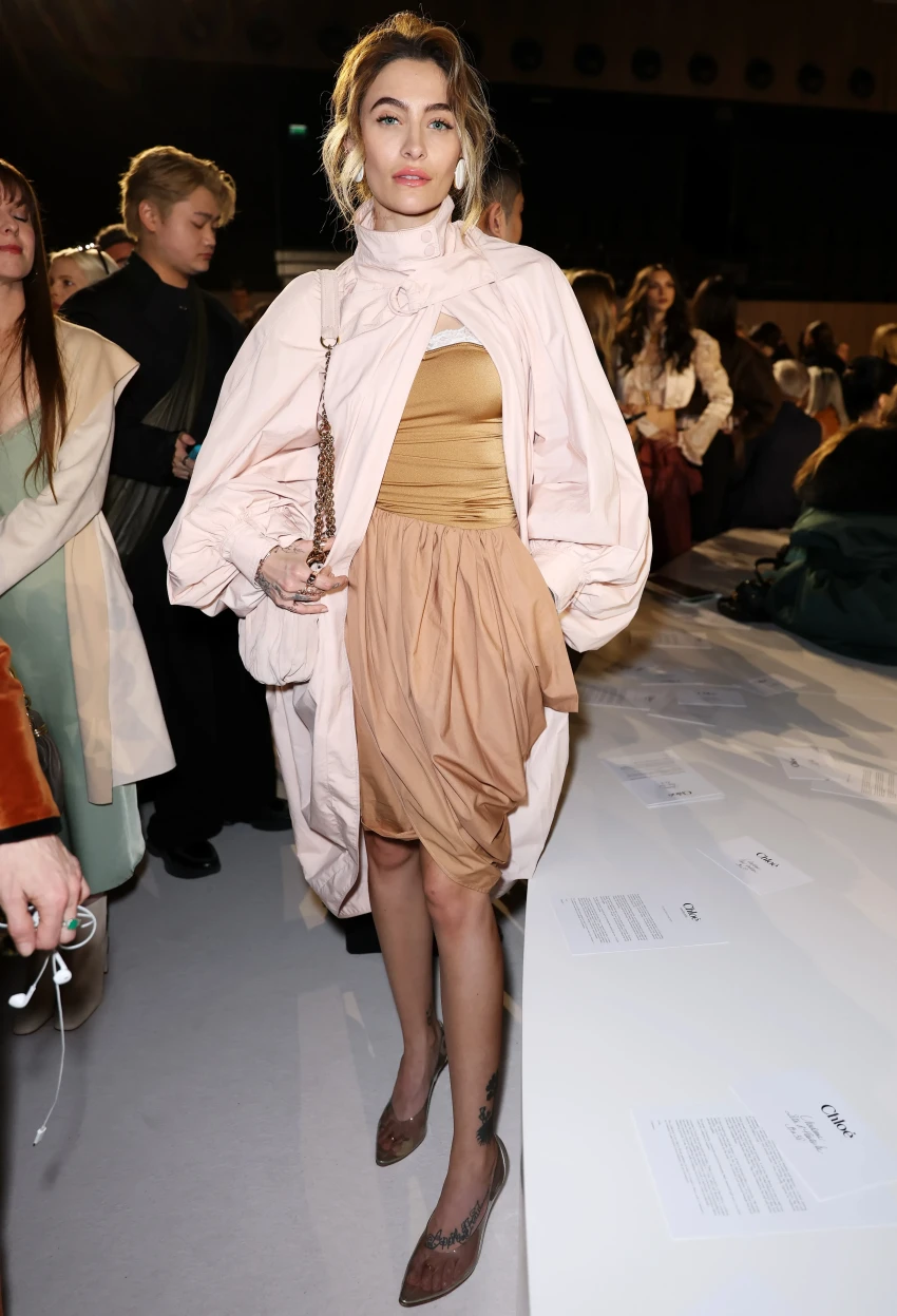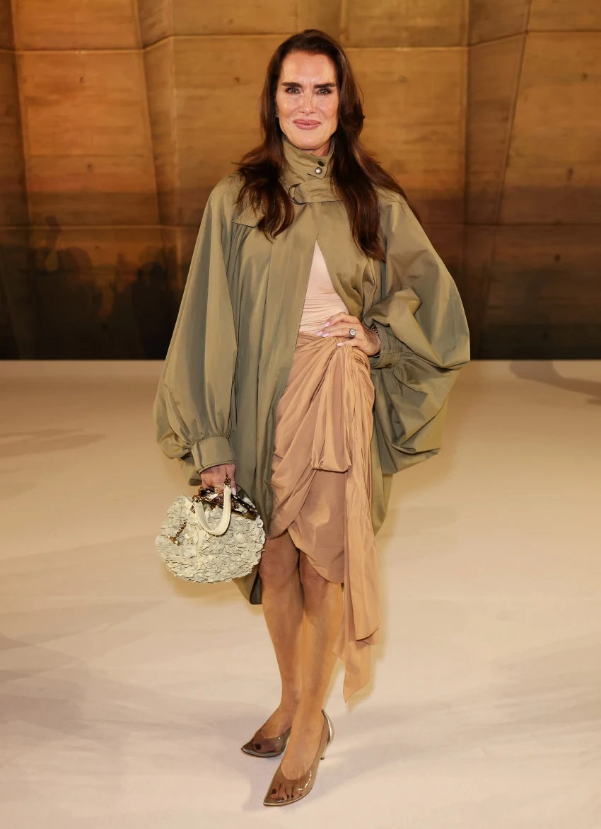 44-летняя супермодель Наталья Водянова пришла на показ в фиолетовом мини-платье, а 60-летняя Брук Шилдс и дочь Майкла Джексона Пэрис надели одинаковые образы разных оттенков. Звезда "Белого лотоса" Эйми Лу Вуд позировала в кожаном плаще, а Оксана Бондаренко примерила блузу и длинную юбку с рюшами. Ксения Шипилова пришла в мини-юбке, а актриса Нина Добрев надела платье с цветочным принтом.
