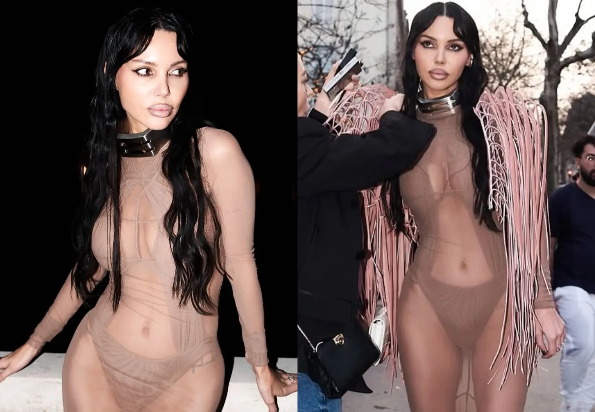 Оксана Самойлова выгуляла "голое" платье на Неделе моды в Париже