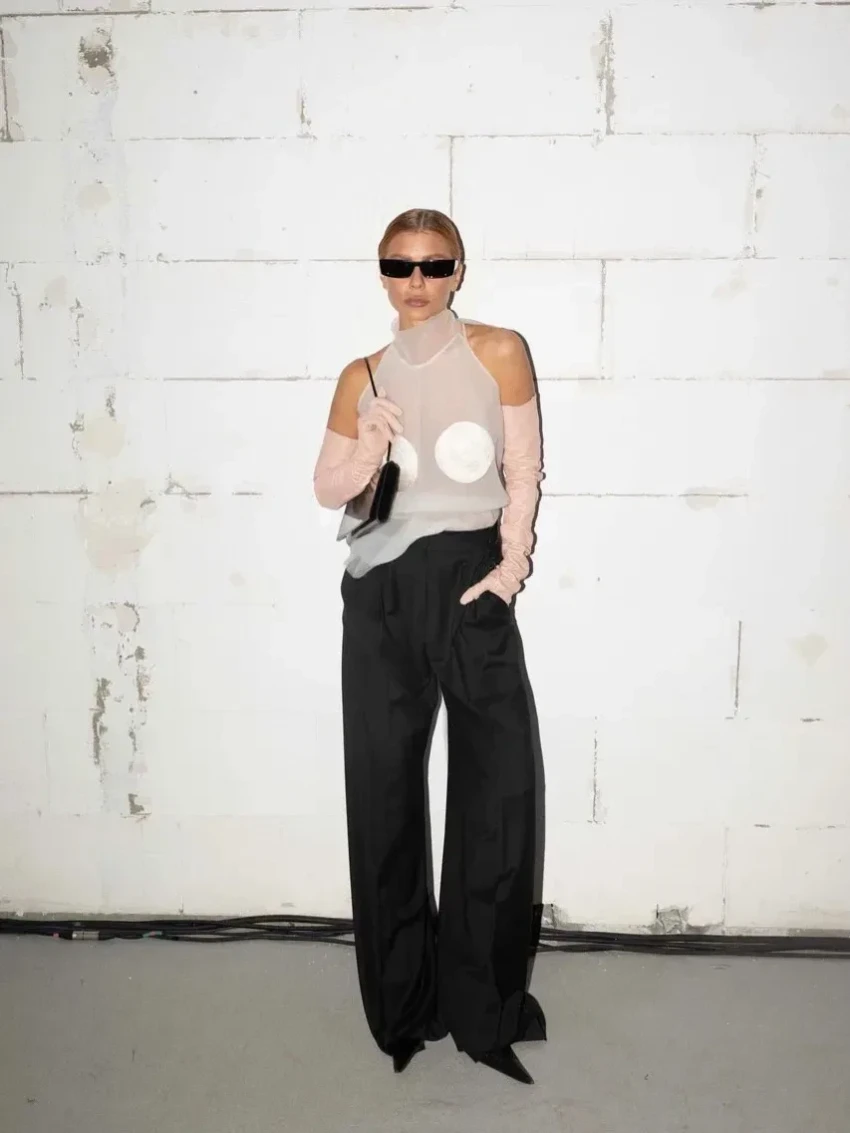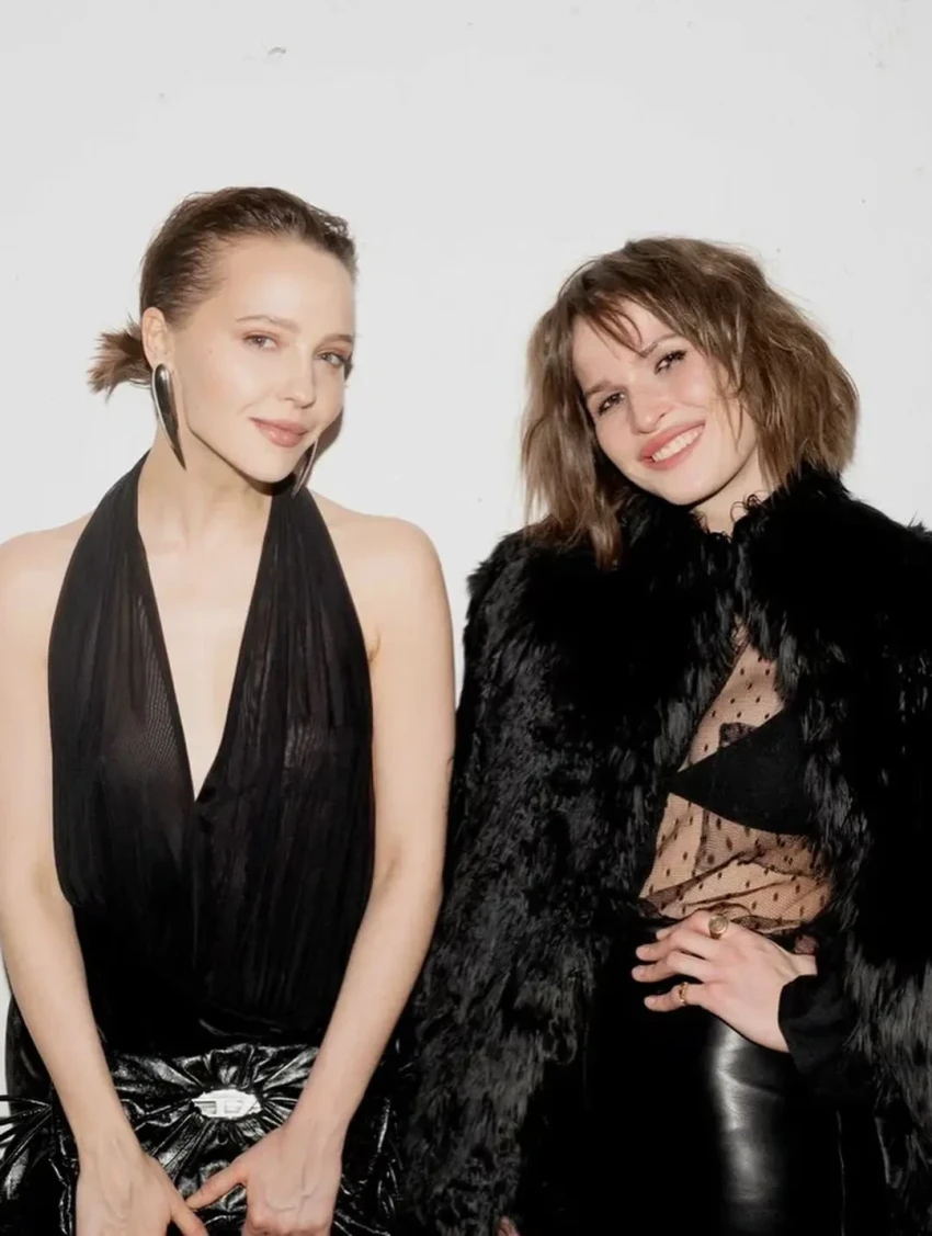 44-летняя Ксения Собчак пришла в металлизированном тренче и контрастных перчатках, а 37-летняя Мария Миногарова надела костюм из мужской коллекции Viva Vox, дополнив его массивными перчатками. 34-летняя актриса Юлия Хлынина позировала в чёрном платье с декольте и разрезом.