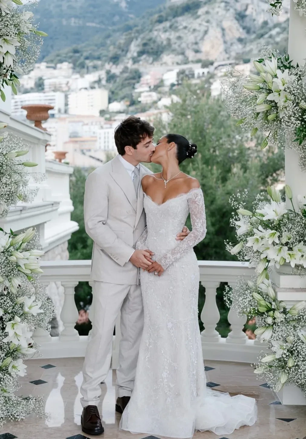 28-летний автогонщик "Формулы-1" Шарль Леклер и его 25-летняя жена Александра вышли на свою первую красную дорожку после роскошной свадьбы в Монако. Молодожёны появились на традиционном Балу роз — благотворительном вечере в поддержку фонда имени Грейс Келли.