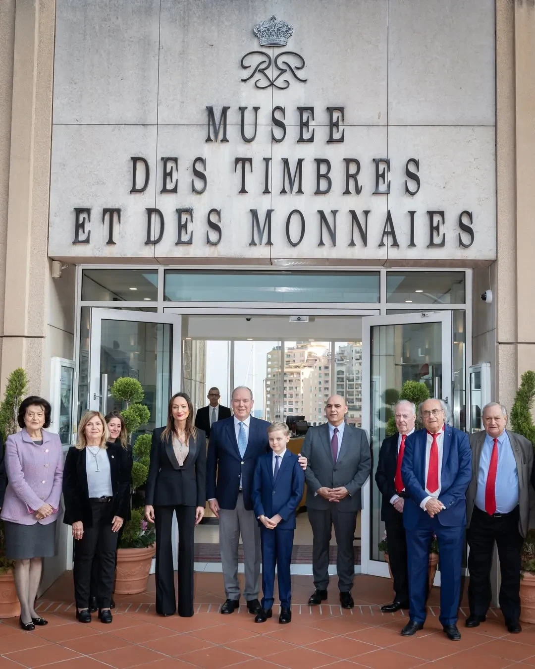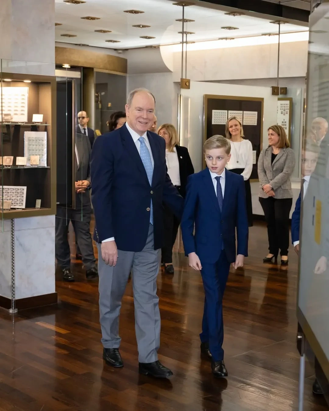 Князь Монако Альбер II с сыном Жаком с сотрудниками музея