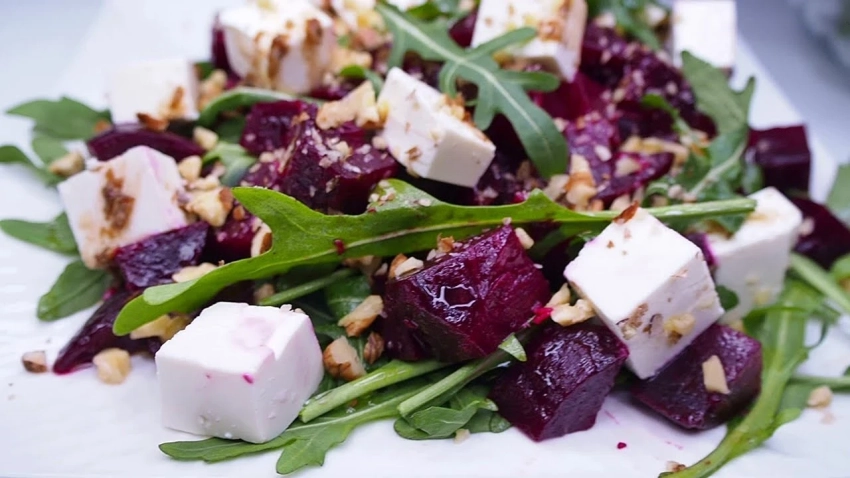 3. Тёплый салат со свёклой, рукколой и фетой