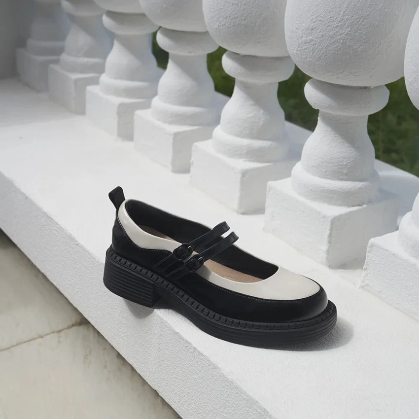 Ретро возвращается — и делает это эффектно. Контрастные туфли с ремешком выглядят одновременно наивно и стильно. Они идеально подойдут к платьям А-силуэта, мини или коктейльным моделям. Винтажные серьги или брошь завершат образ.